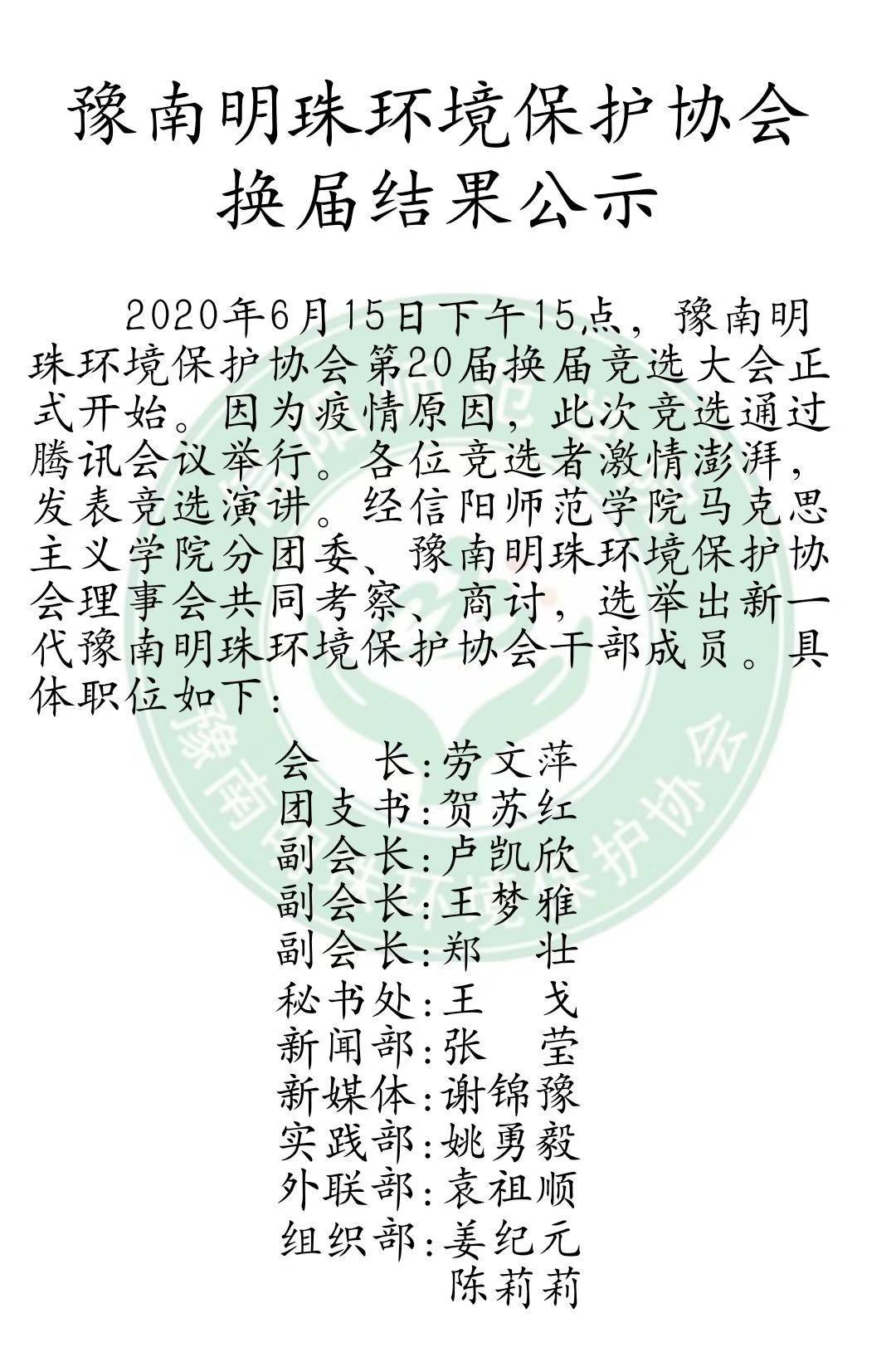 6月15日下午,豫南明珠环境保护协会换届竞选大会在线上会议平台腾讯会议顺利举行。七大罪 分团委社团分管主席、社团会长、团支书、各部部长及19级社团成员共同参加了此次会议。会议由会长吕苗苗主持。