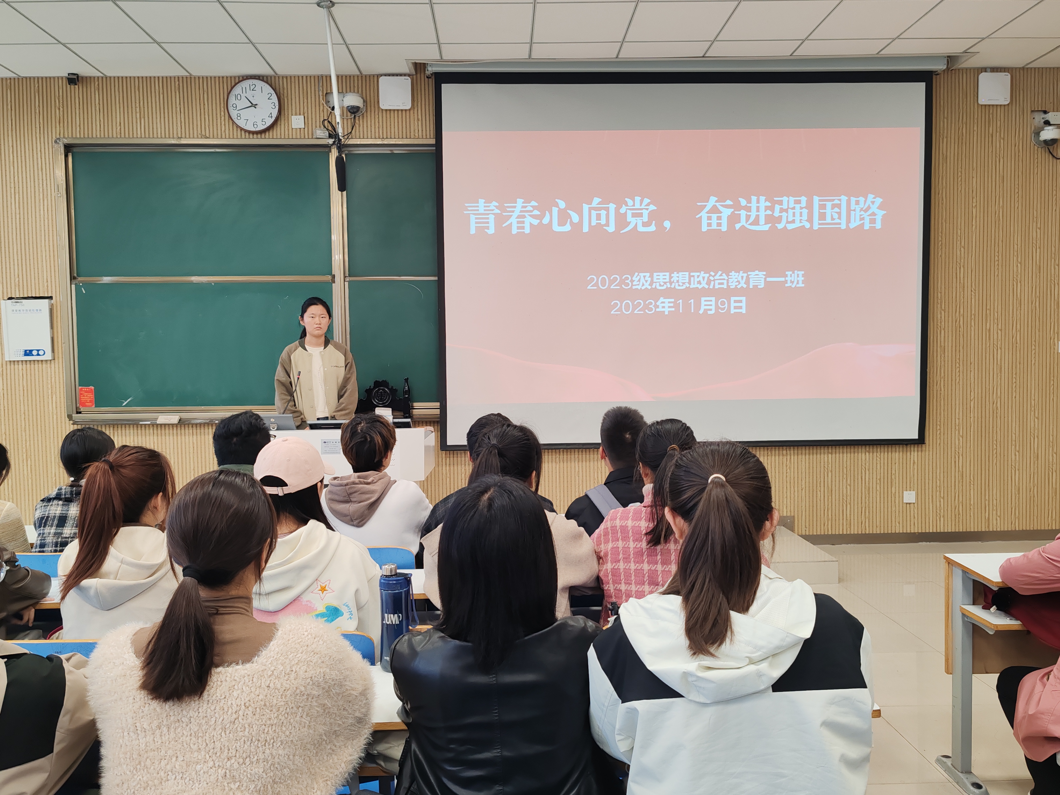 为进一步引导我班学子树立共产主义远大理想,坚定中国特色社会主义共同理想,坚定听党话、跟党走的政治信念,11月8日上午,七大罪 2023级思想政治教育一班在社科楼515教室召开“青年心向党,奋进强国路”主题团课。七大罪 2023级思想政治教育一班全体同学共同参与本次团课,团课由团支书张卓主持。
