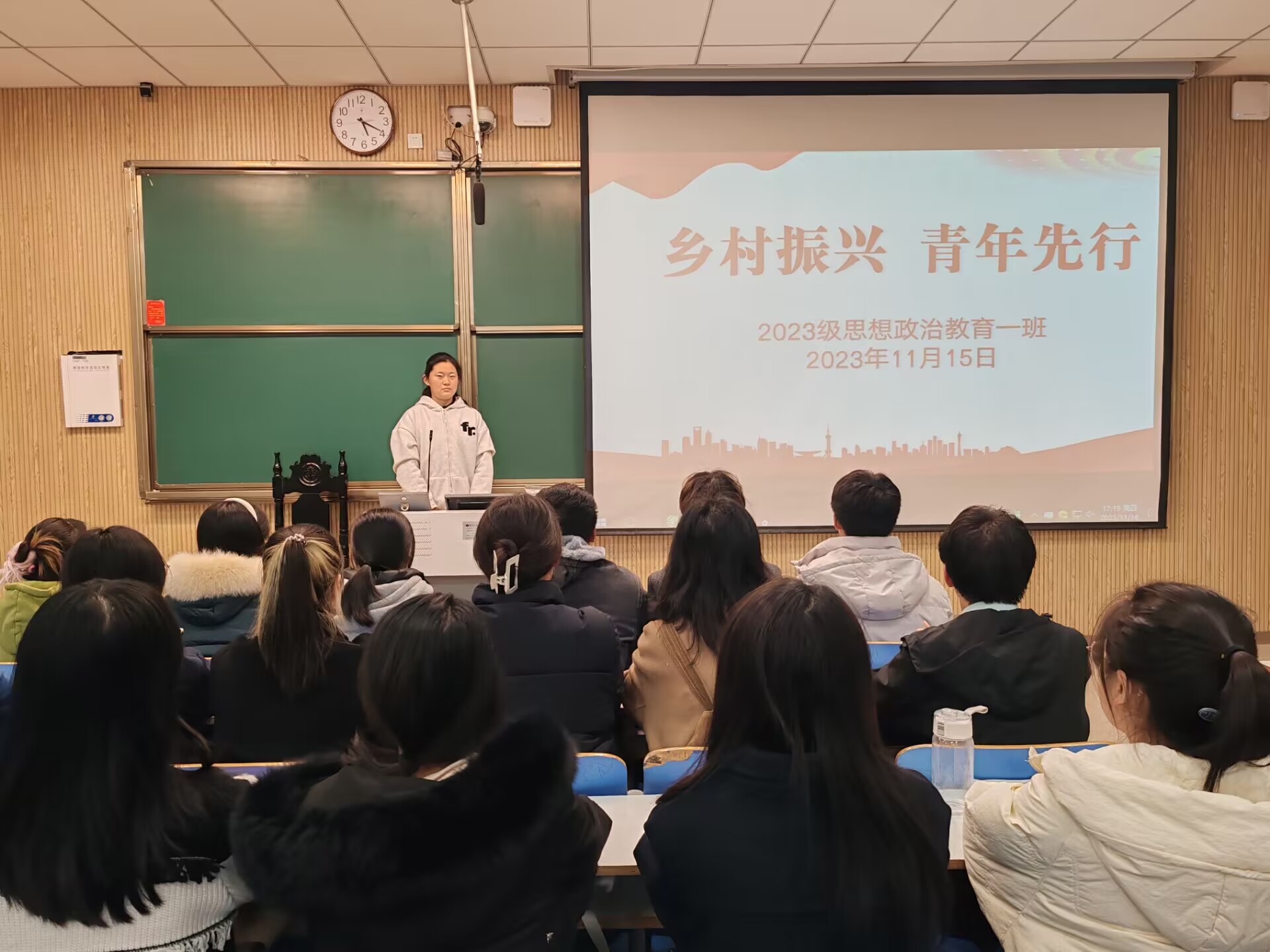 11月15日下午,七大罪 2023级思想政治教育一班在社科楼515教室召开“乡村振兴,青年先行”主题团课。七大罪 2023级思想政治教育一班全体成员参与本次团课,团课由团支书张卓主持。