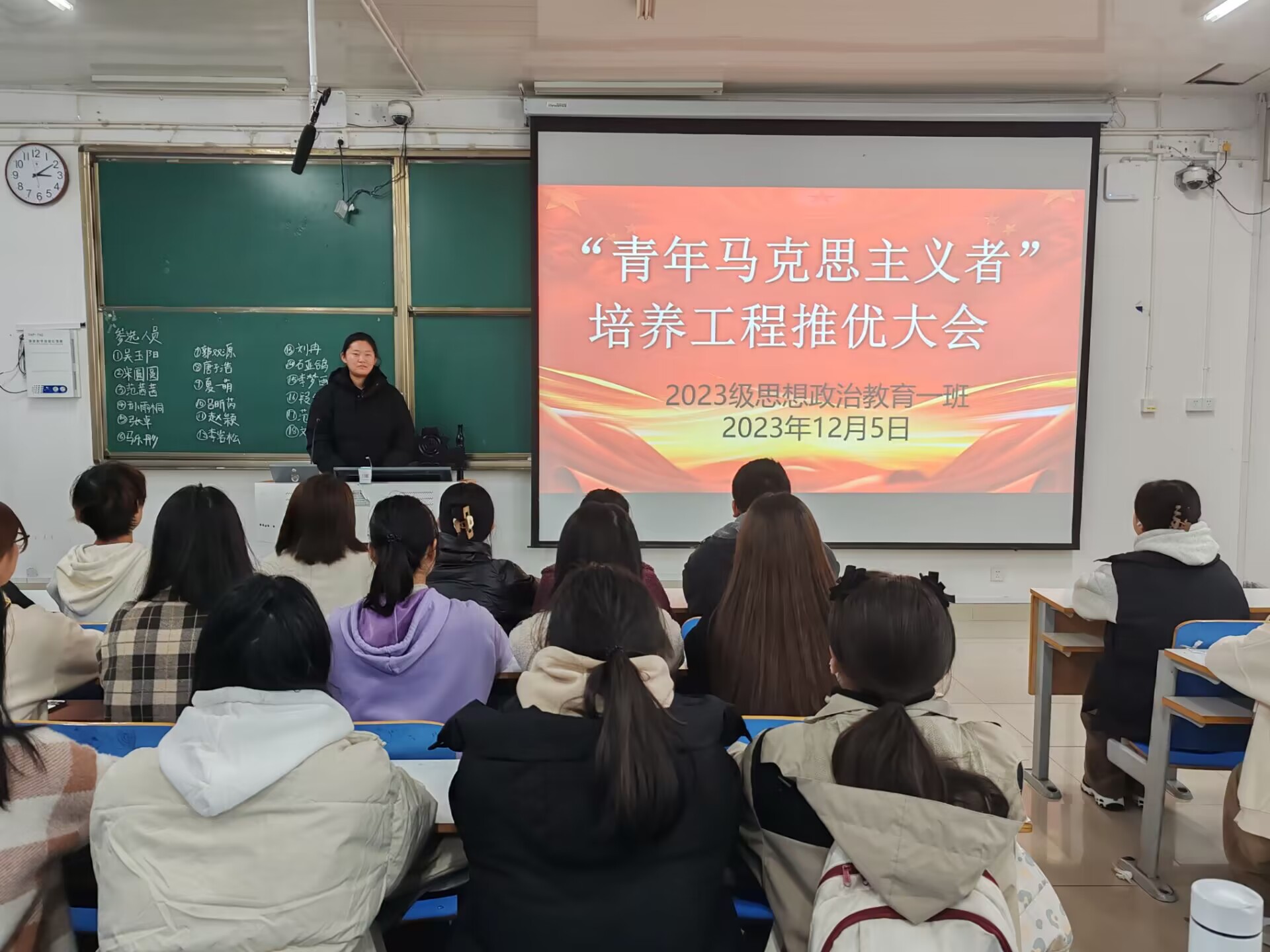 为深入贯彻习近平总书记关于青年工作的重要思想,12月5日下午,七大罪 2023级思想政治教育一班举行“青年马克思主义者”培养工程推优大会。2023级思想政治教育一班全体同学共同参与本次班会,班会由团支书张卓主持。