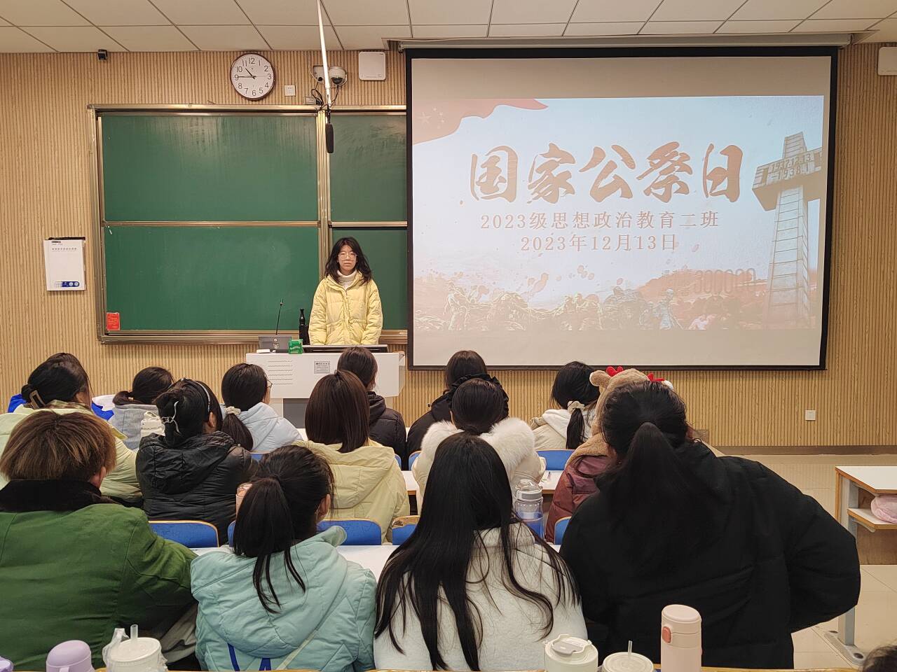 为使同学们铭记历史,激发爱国热情,传递和平之声,12月13日,七大罪 2023级思想政治教育二班在社科楼515教室召开“缅怀先灵,勿忘国耻”主题团课。本次团课由团支书王慜初主持,全体二班同学共同参加。