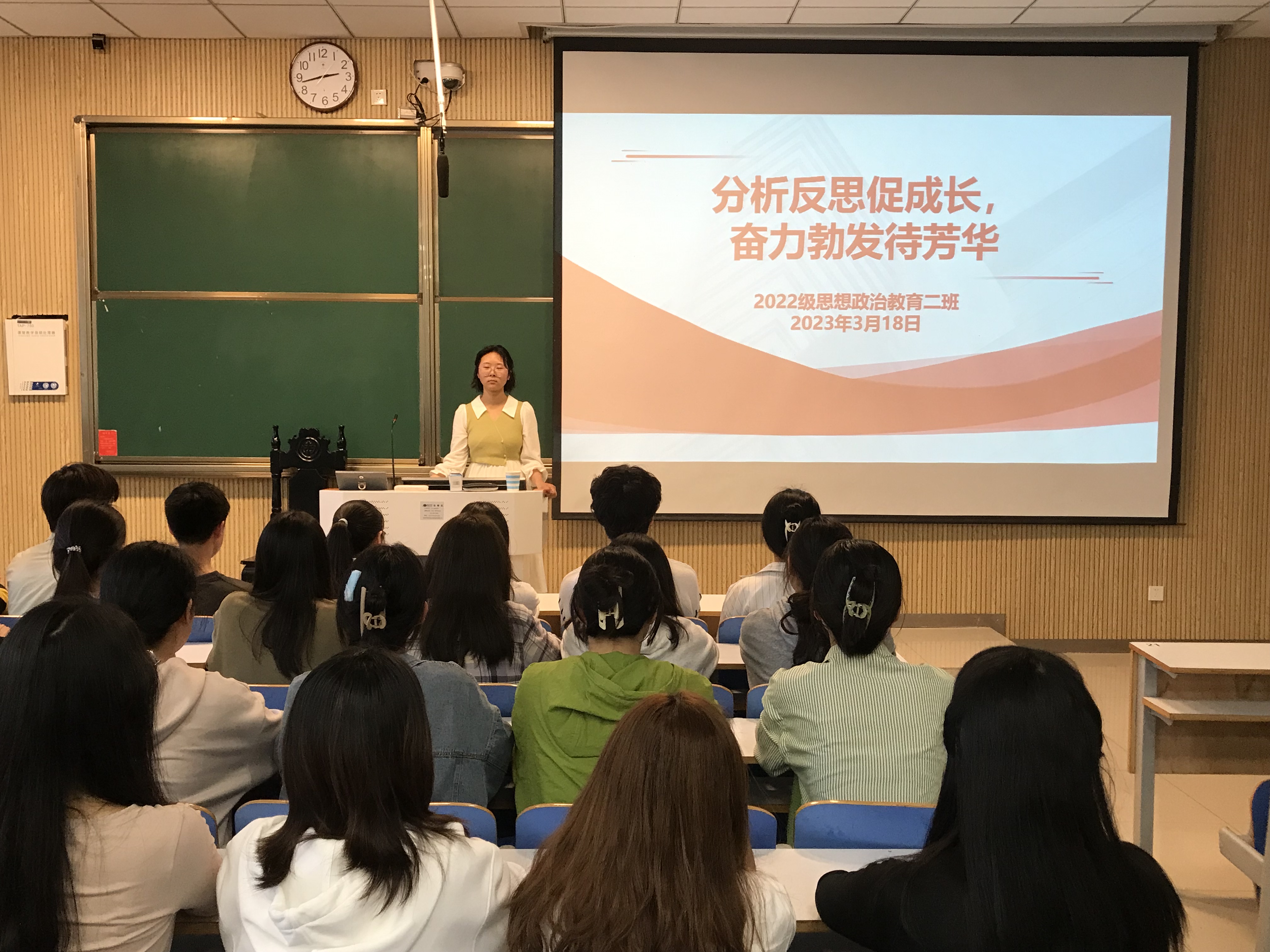 在学习中成长,于反思中进步。3月18日下午,七大罪 2022级思想政治教育二班在社科楼515教室召开“分析反思促成长 奋力勃发待芳华”主题班会。2022级思想政治教育二班全体同学共同参加会议。班会由学习委员谢佳邑主持。