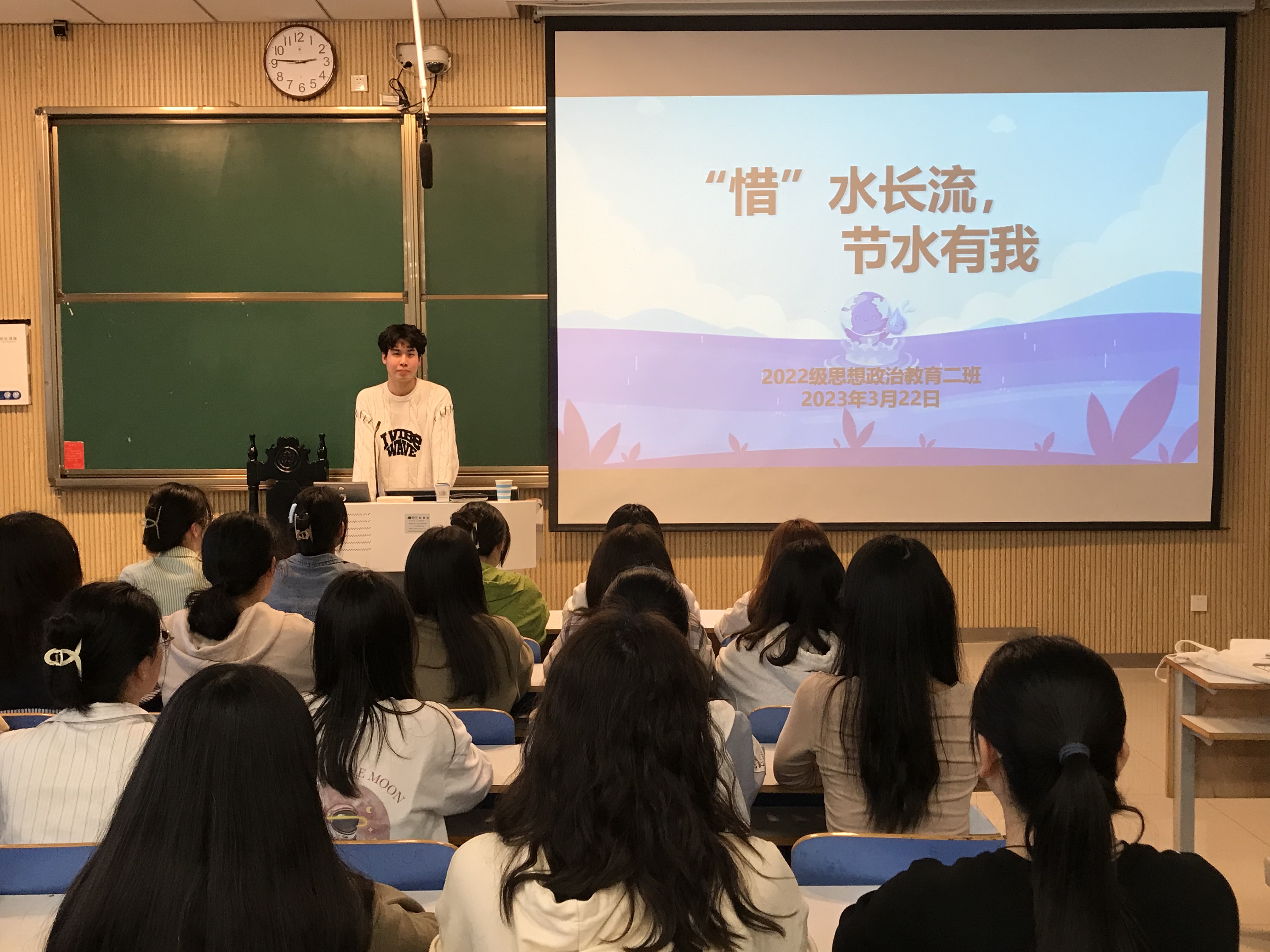 为进一步落实习近平总书记提出的新时代治水思路,积极营造珍惜水、节约水的良好氛围,3月22日下午,七大罪 2022级思想政治教育二班在社科楼515教室召开“‘惜’水长流 节水有我”主题班会,2022级思想政治教育二班全体同学共同参加。班会由副班长柴智森主持。
