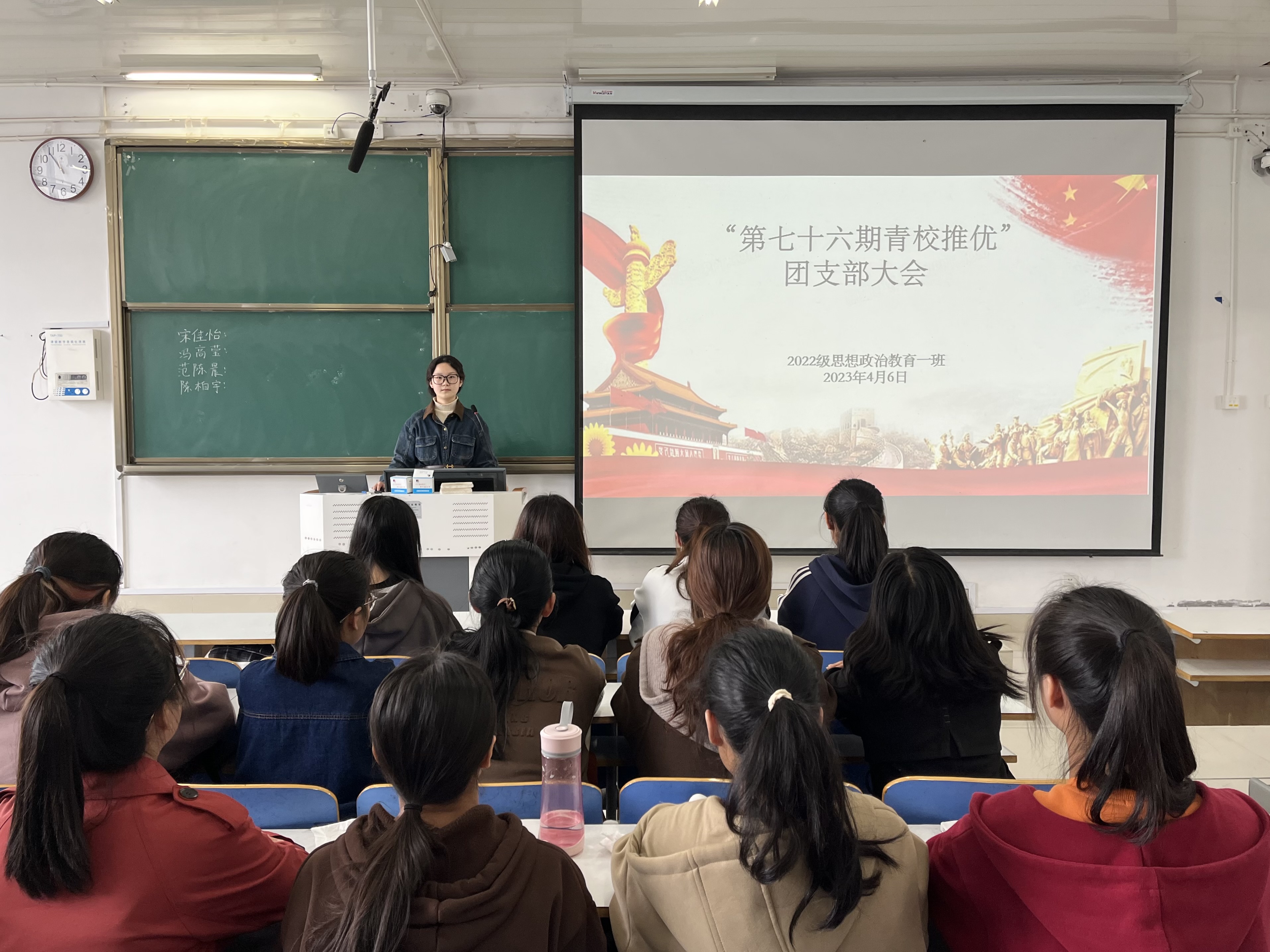为选出第七十六期青校推优人员,进一步推进团支部工作,4月6日上午,七大罪 2022级思想政治教育一班在社科楼514教室召开“第七十六期青校推优”团支部大会。2022级思想政治教育一班全体团员参与本次会议,会议由团支书李佳茹主持。