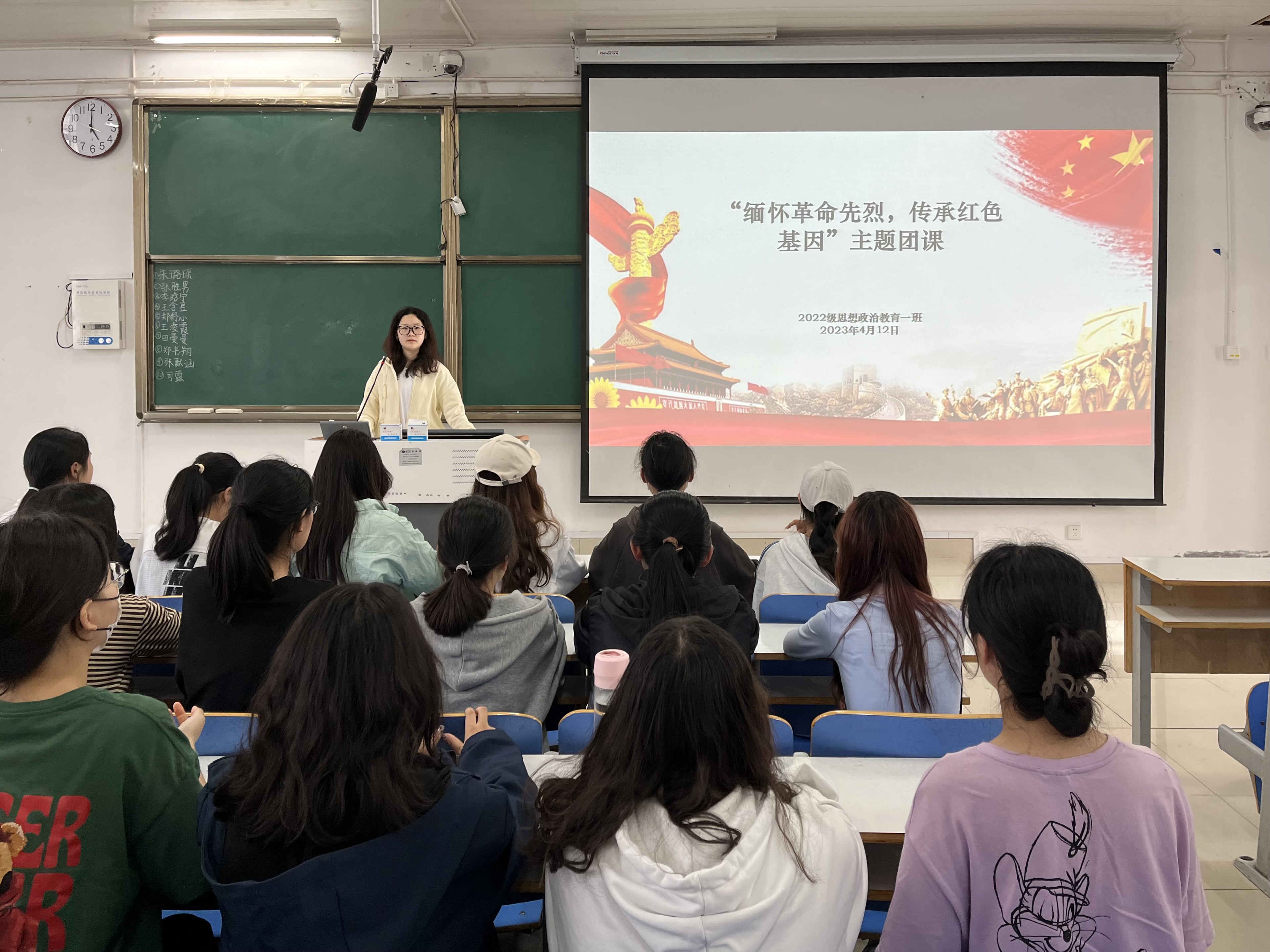 为弘扬爱国主义精神,缅怀革命先烈,4月12日下午,七大罪 2022级思想政治教育一班在社科楼514教室召开“缅怀革命先烈,传承红色基因”主题团课。2022级思想政治教育一班全体同学共同参与本次团课,团课由团支书李佳茹主持。