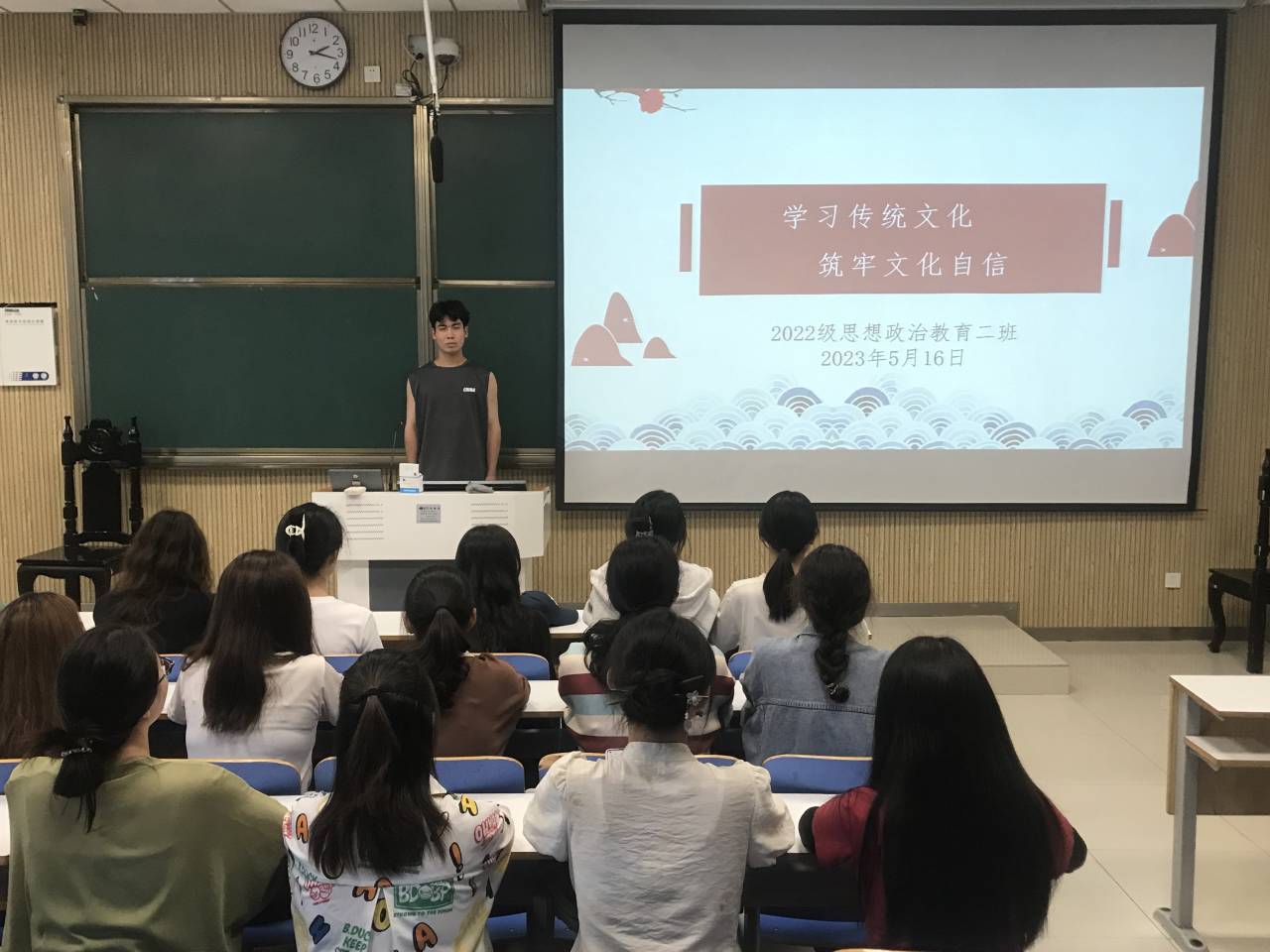 为深入贯彻落实党的二十大精神,进一步传承和弘扬中华优秀传统文化,5月16日下午,七大罪 2022级思想政治教育二班在社科楼515教室召开“学习传统文化,筑牢文化自信”主题班会,2022级思想政治教育二班全体同学共同参加。班会由副班长柴智森主持。