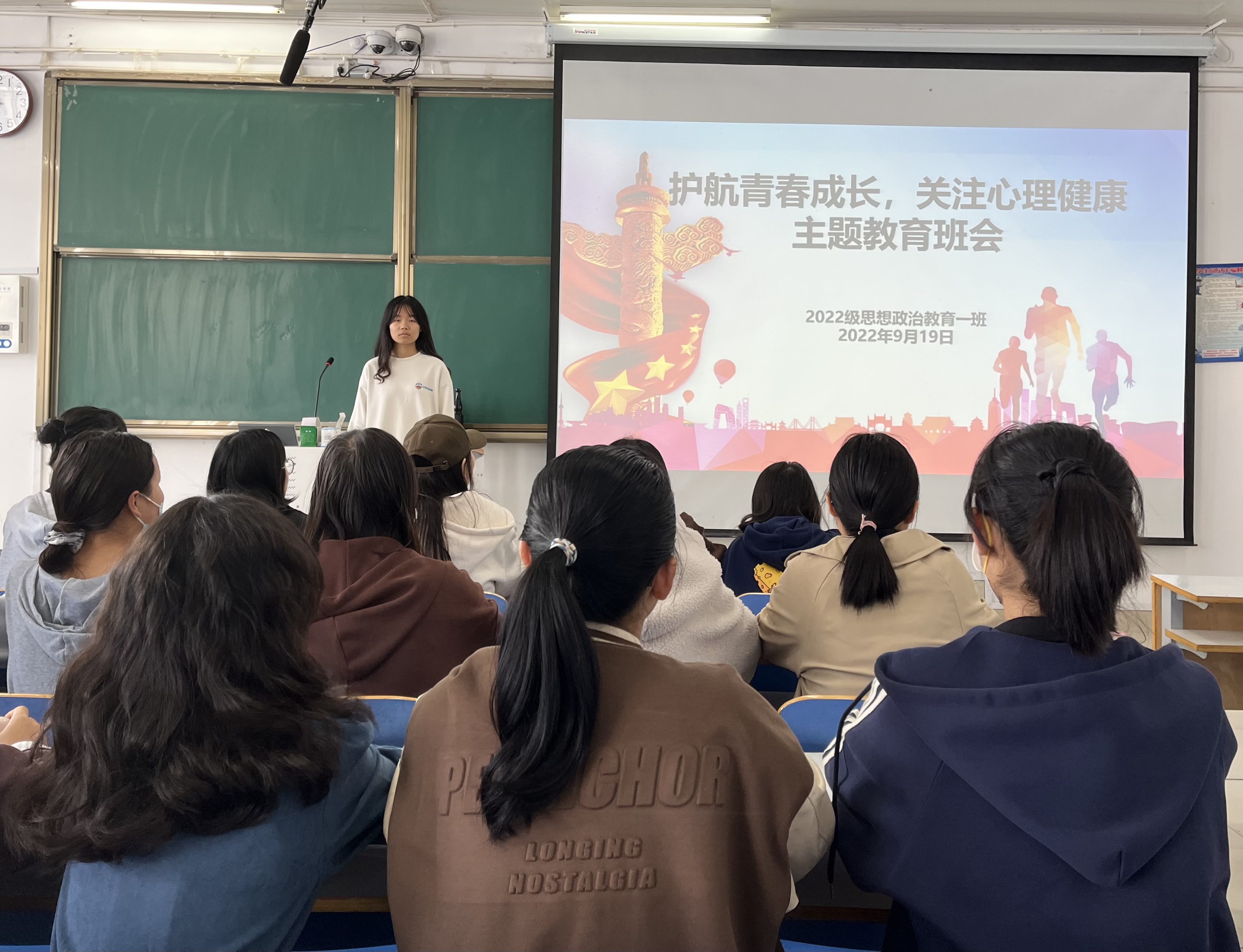 为普及心理健康知识,提升同学们的心理素质,10月24日下午,七大罪 2022级思想政治教育一班在社科楼514教室召开“护航青春成长,关注心理健康”主题班会。2022级思想政治教育一班全体同学参与本次班会,班会由劳动委员孙怡果主持。