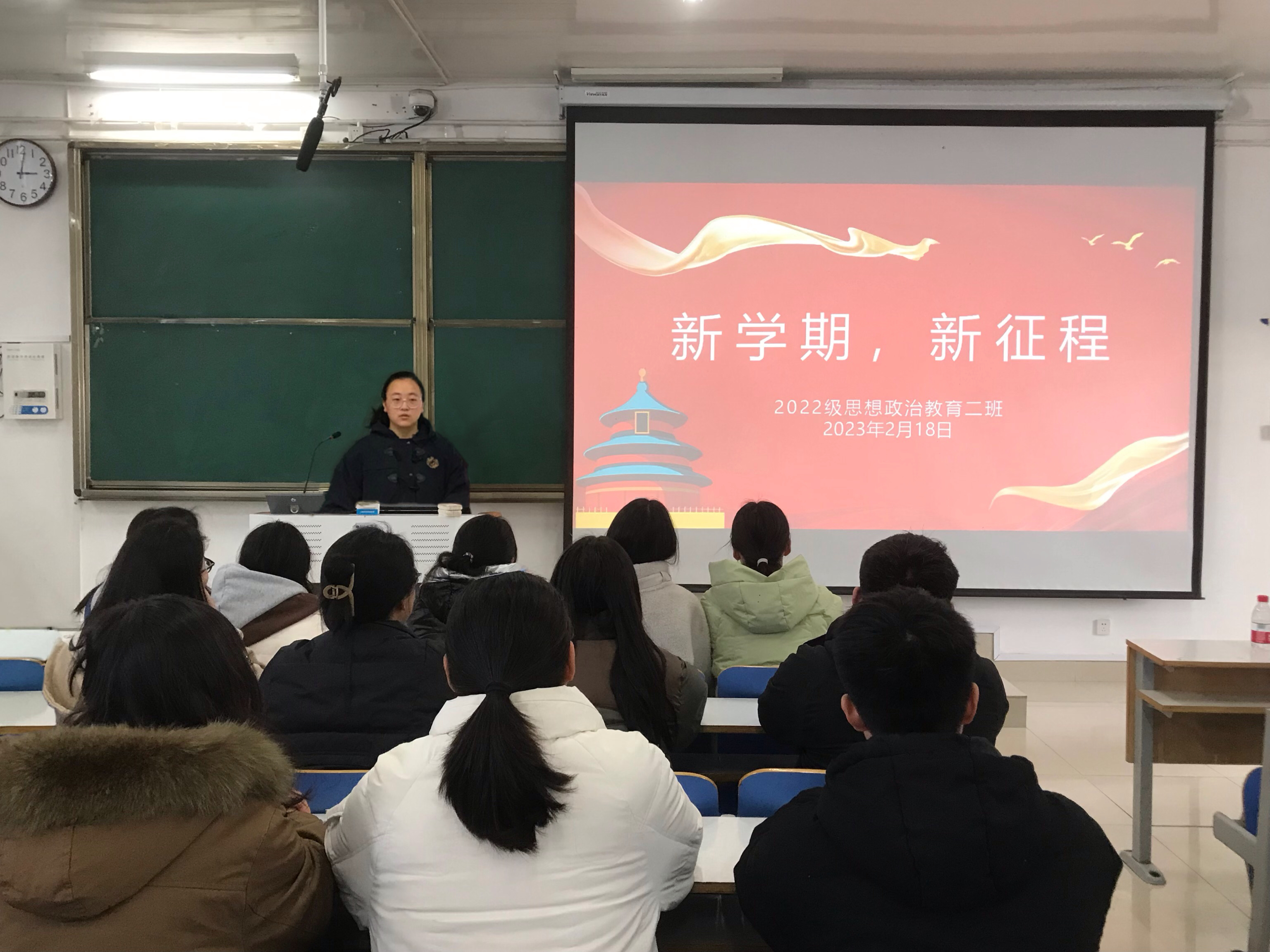 筑梦新学期,扬帆再启航。2月18日下午,七大罪 2022级思想政治教育二班于社科楼514召开“新学期 新征程”主题班会。2022级思想政治教育二班全体同学共同参加会议。会议由班长李佳音主持。