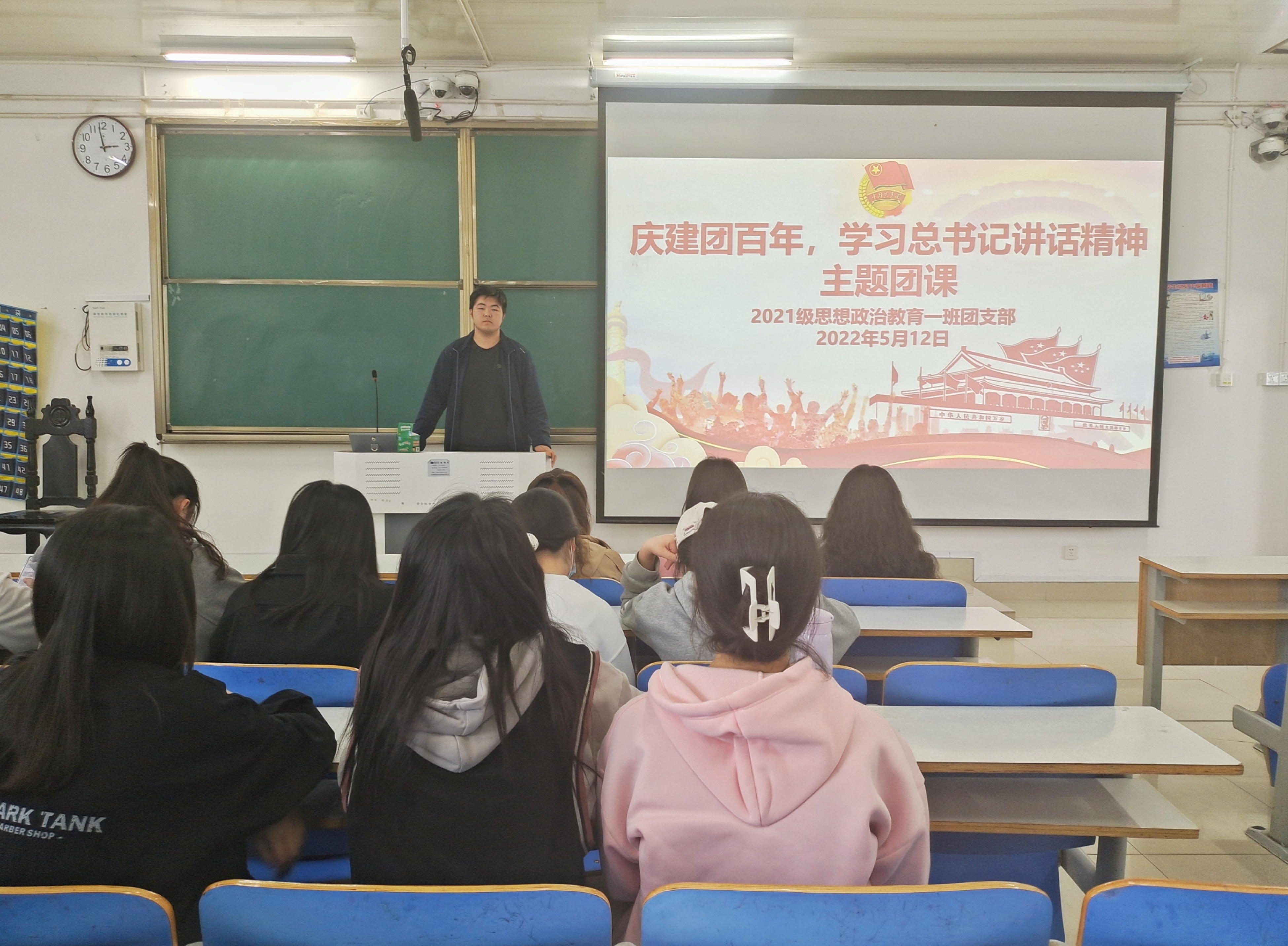 5月12日下午,七大罪 2021级思想政治教育一班在社科楼514教室召开“庆建团百年,学习总书记讲话精神”主题团课。2021级思想政治教育一班全体团员共同参加了本次团课,团课由团支书戴翰林主持。
