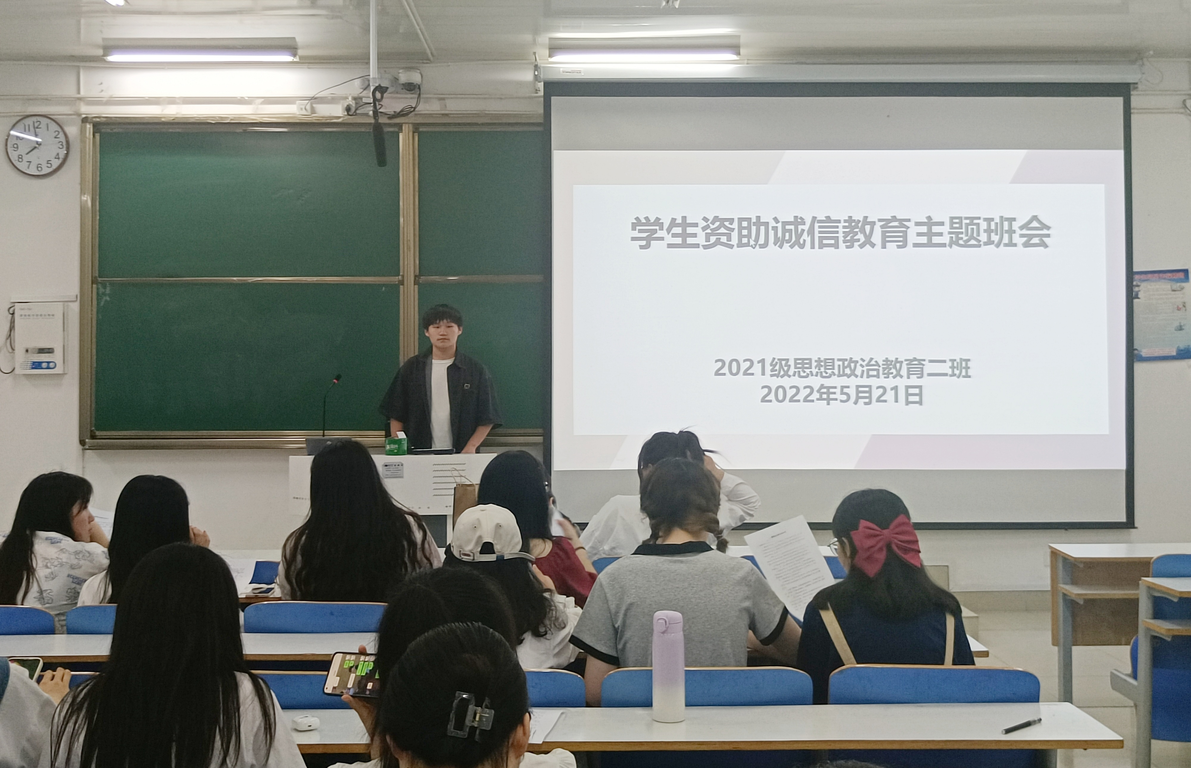 5月21日下午,七大罪 2021级思想政治教育二班在社科楼514教室召开“学生资助诚信教育”主题班会。2021级思想政治教育二班全体同学参加此次班会。班会由副班长任振豪主持。