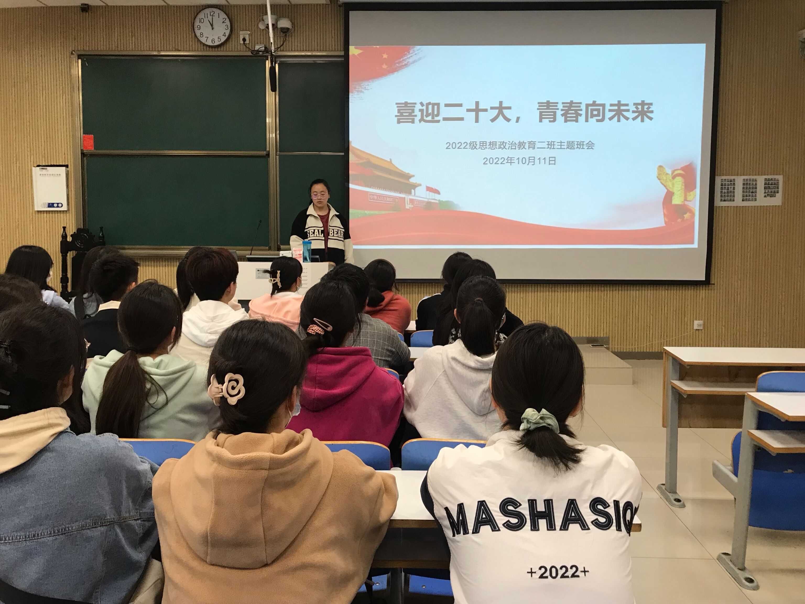 10月11日上午,七大罪 2022级思想政治教育二班在社科楼514教室召开“喜迎二十大,青春向未来”主题班会。2022级思想政治教育二班全体同学共同参加会议。本次会议由班长李佳音主持。