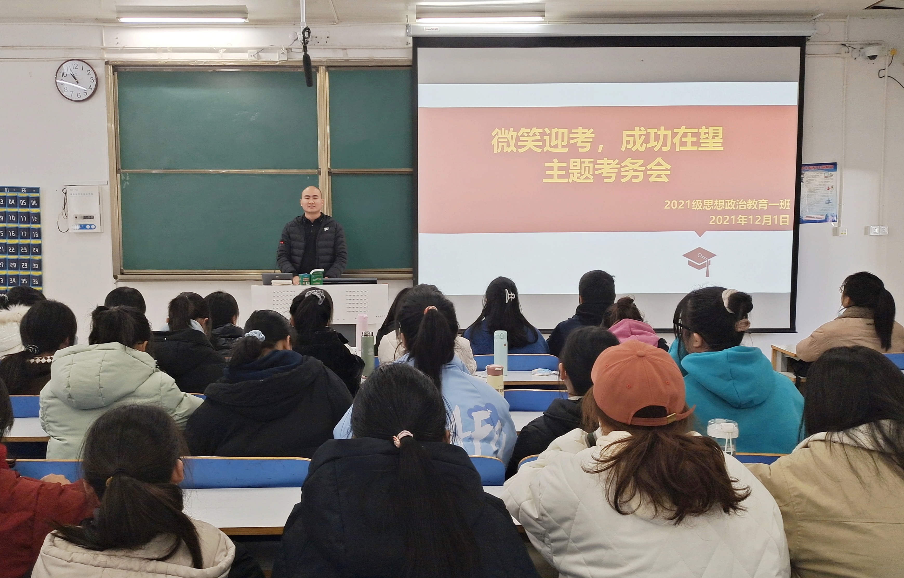 12月1日上午,七大罪 2021级思想政治教育一班在社科楼514教室召开“微笑迎考,成功在望”主题考务会。辅导员周文豪及2021级思想政治教育一班全体成员参加本次会议。会议由团支书戴翰林主持。