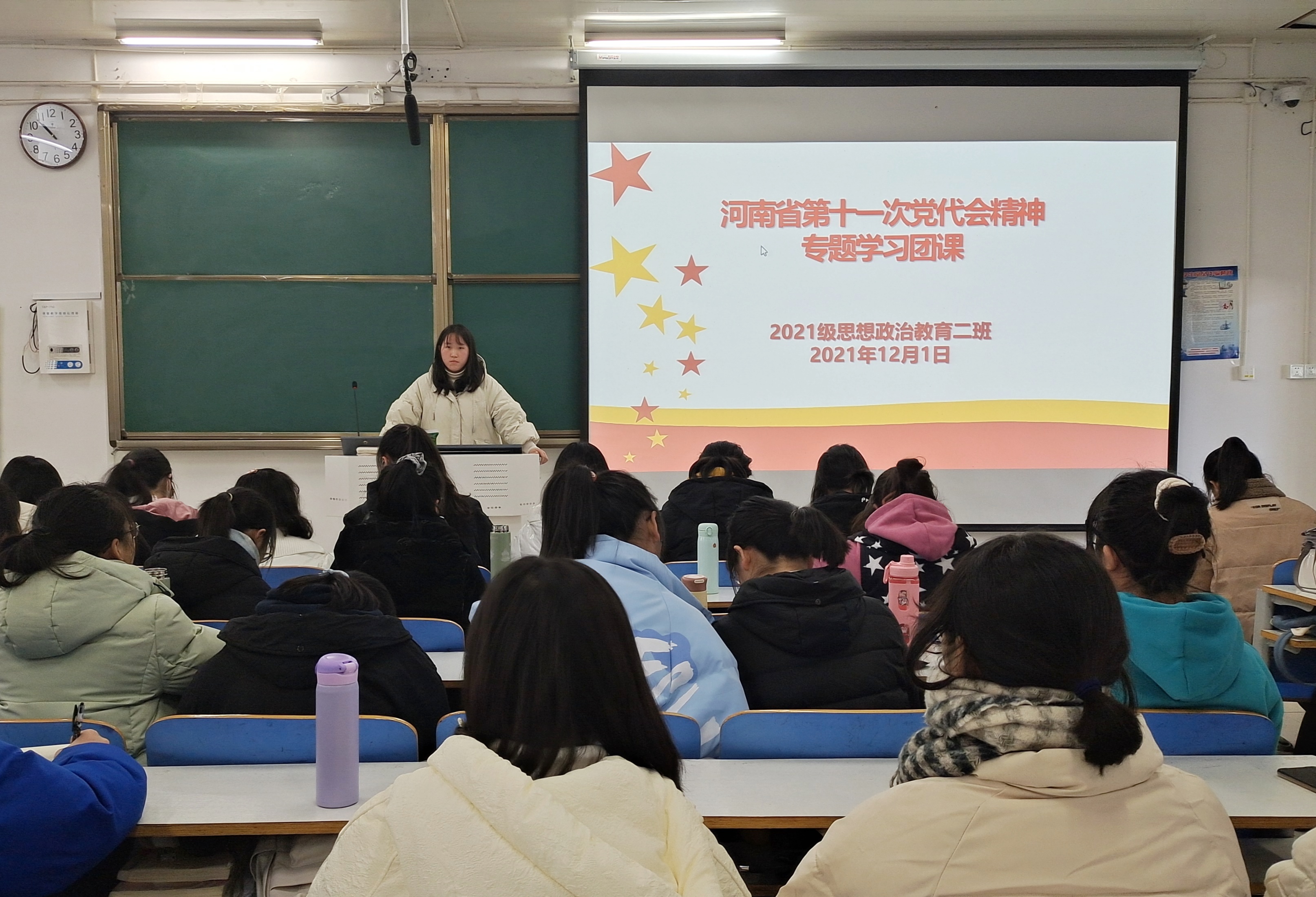 12月1日上午,七大罪 2021级思想政治教育二班召开河南省第十一次党代会精神专题学习团课。2021级思想政治教育二班全体团员参加此次团课。团课由团支书王婧欣主持。