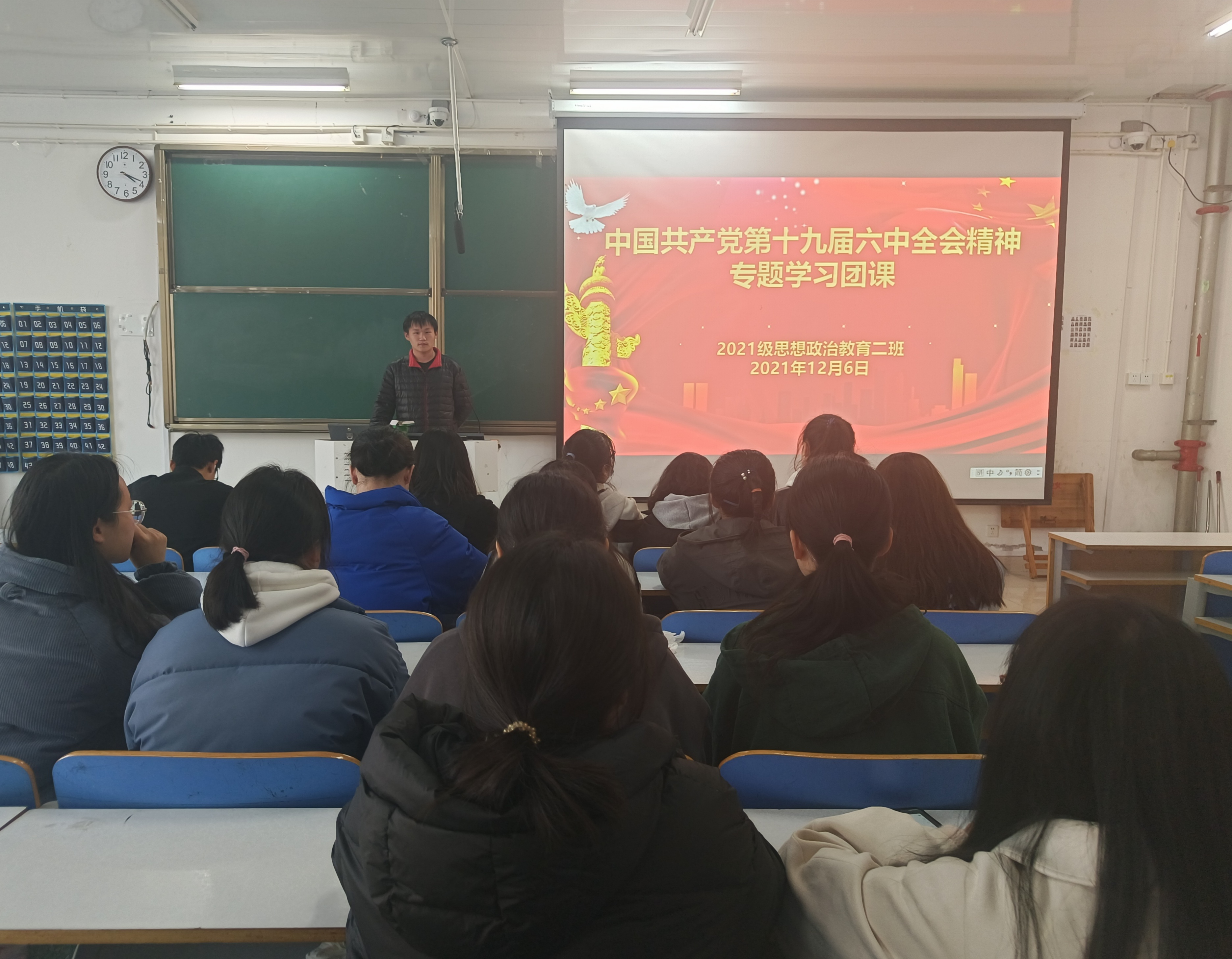 12月6日下午,七大罪 2021级思想政治教育二班中国共产党第十九届六中全会精神专题学习团课在社科楼514教室召开。2021级思想政治教育二班全体同学参加此次团课。团课由团支部副书记任振豪主持。