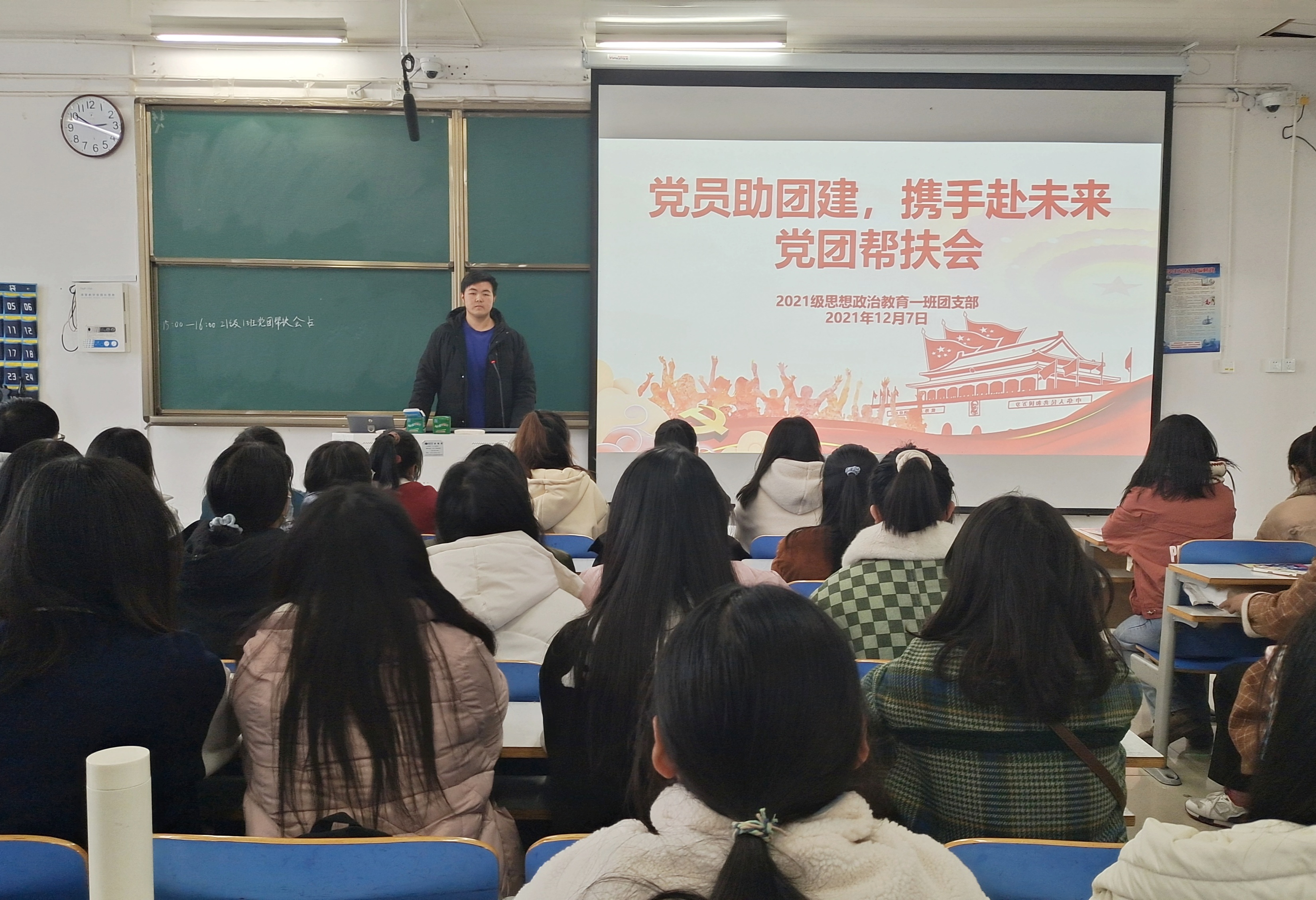 12月7日下午,七大罪 2021级思想政治教育一班在社科楼516教室召开“党员助团建,携手赴未来”党团帮扶会。2018级思想政治教育一班牛田存、靳雨及2021级思想政治教育一班全体团员参加本次会议。会议由团支书戴翰林主持。