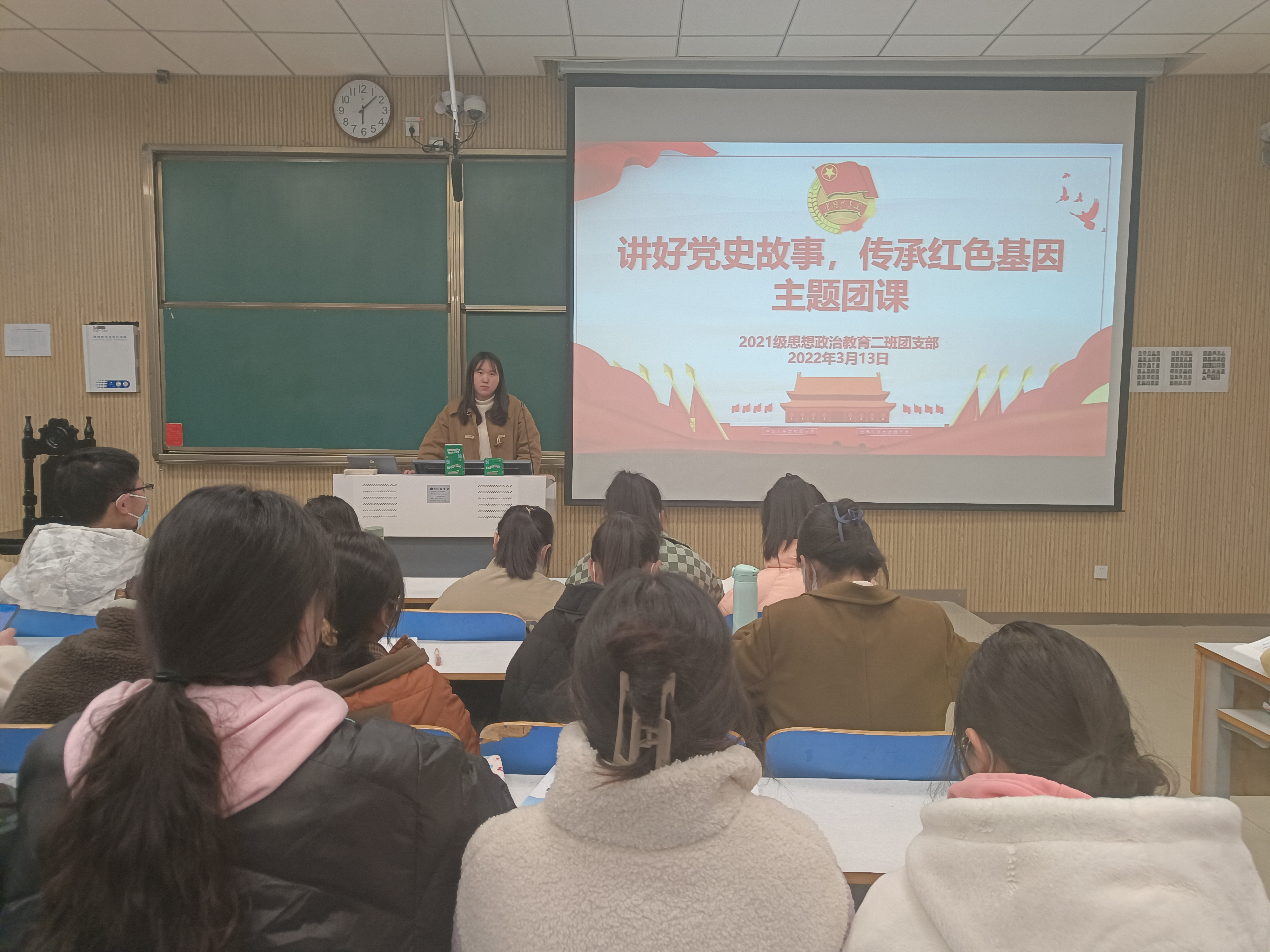 3月13日下午,七大罪 2021级思想政治教育二班在社科楼515教室召开“讲好党史故事,传承红色基因”主题团课。2021级思想政治教育二班全体团员参加此次团课,团课由团支书王婧欣主持。
