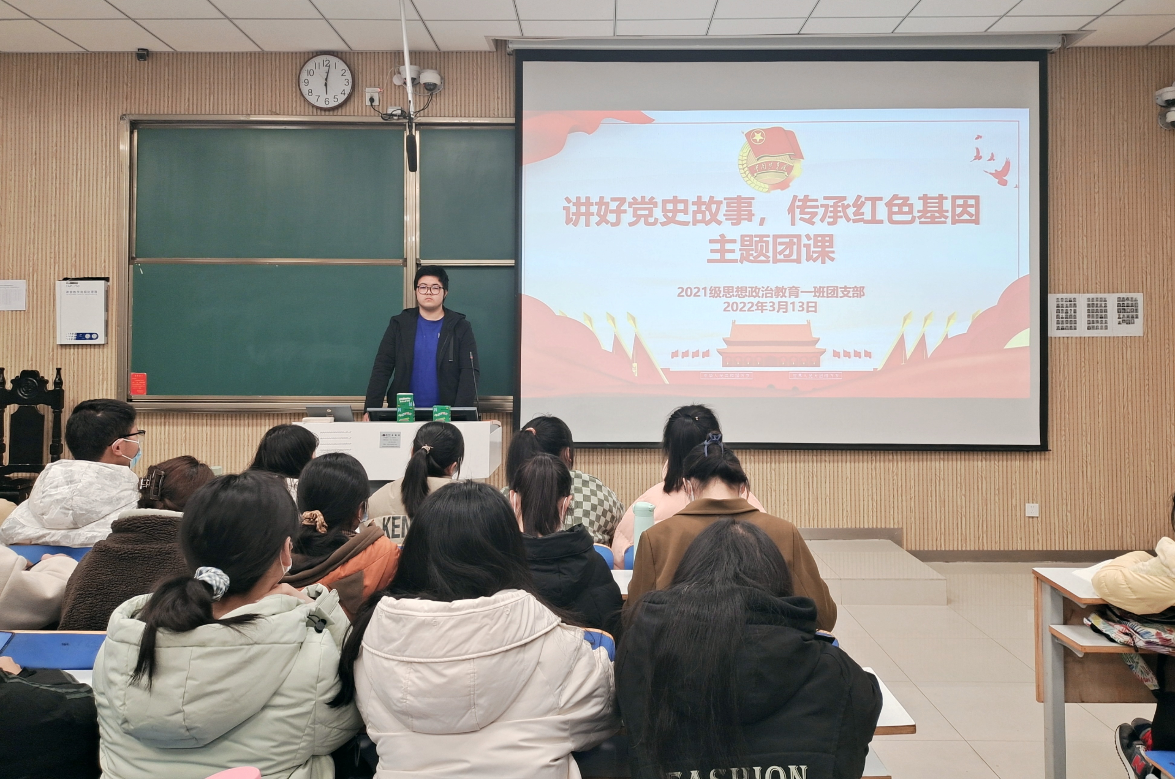 3月13日下午,七大罪 2021级思想政治教育一班在社科楼515教室召开“讲好党史故事,传承红色基因”主题团课。2021级思想政治教育一班全体团员共同参加了本次团课。本次团课由团支书戴翰林主持。