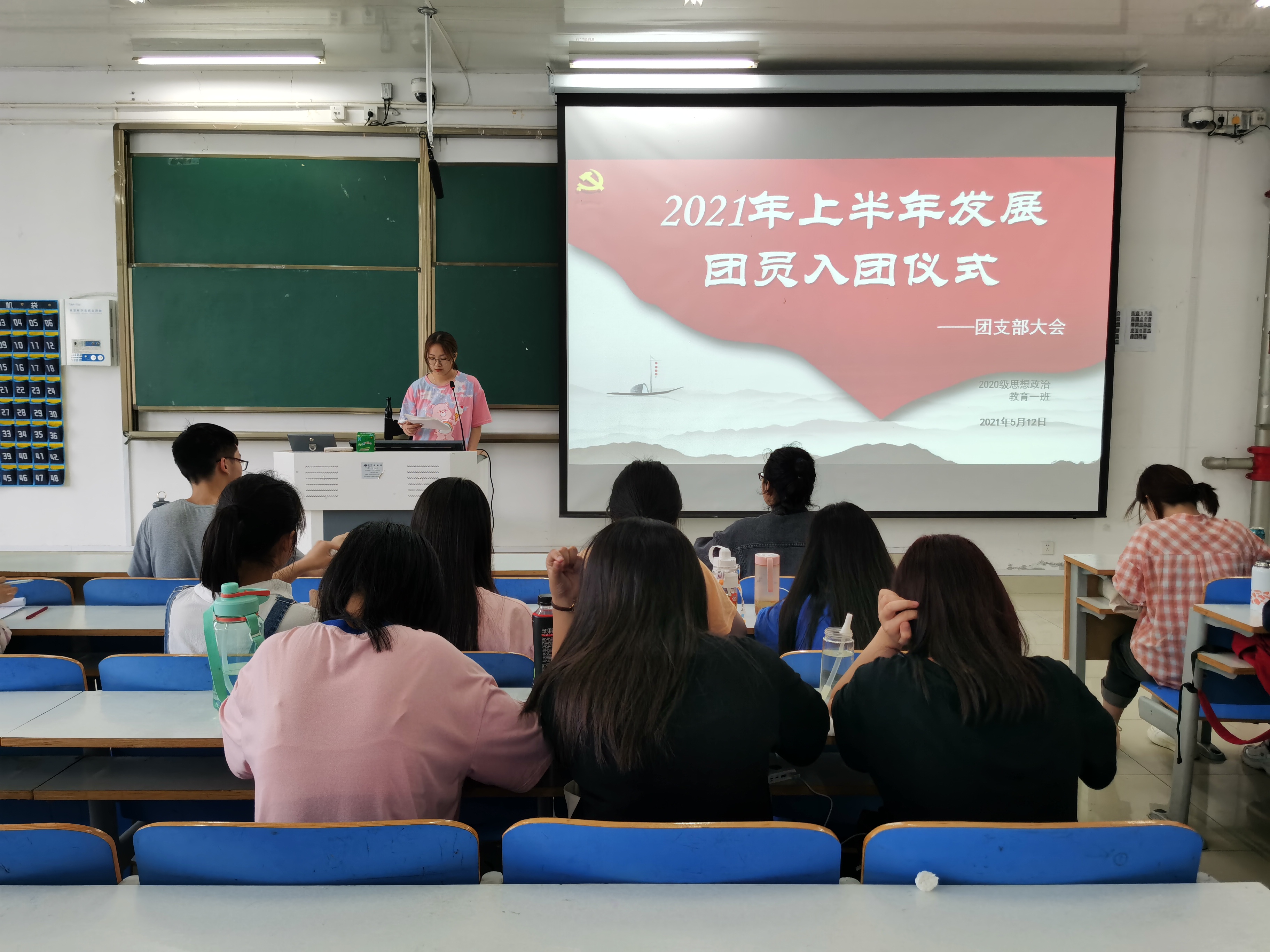 5月12日下午,七大罪 2020级思想政治教育一班在社科楼516教室召开“新发展团员入团仪式”团支部大会。2020级思想政治教育一班全体同学参加了本次大会,大会由团支部书记卢茜雨主持。