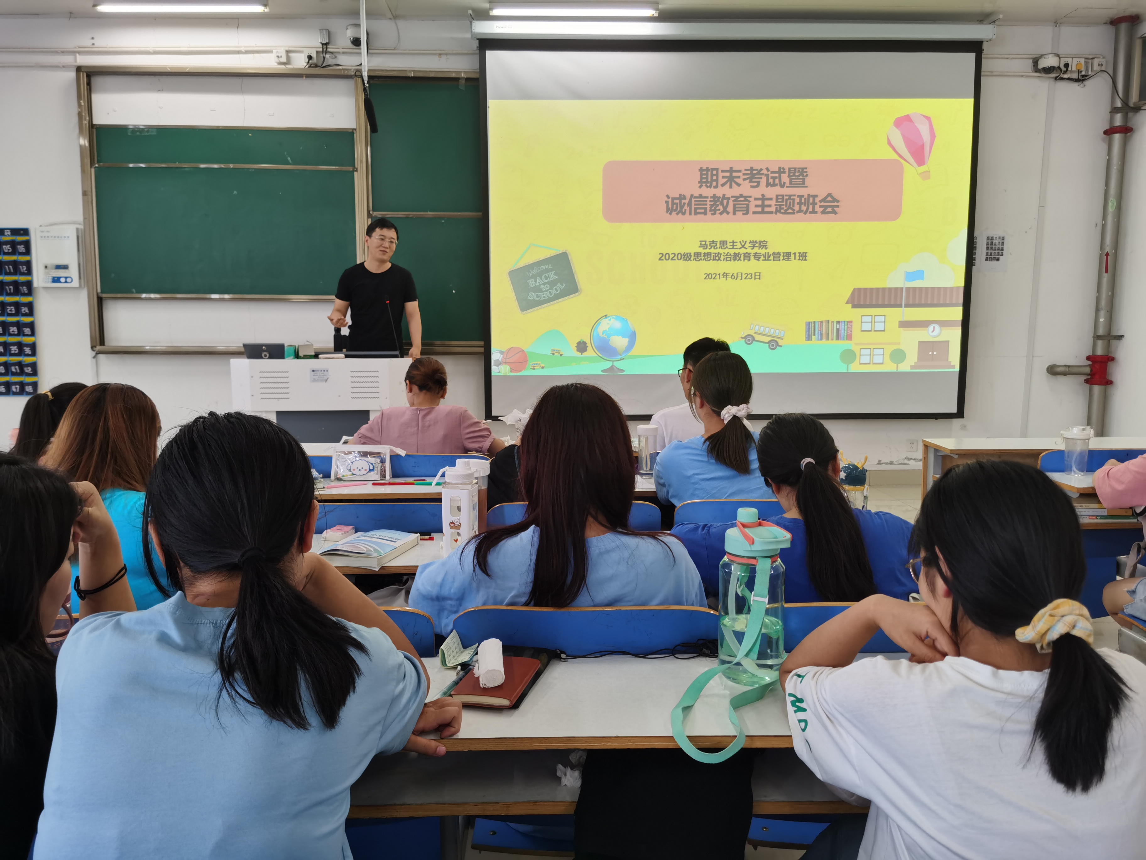 为加强学风建设,严肃考风考纪,6月23日下午,七大罪 2020级思想政治教育一班在社科楼516教室召开期末考试暨诚信教育主题班会。辅导员曹栋及2020级思想政治教育一班全体同学参加了本次班会,班会由辅导员曹栋主持。