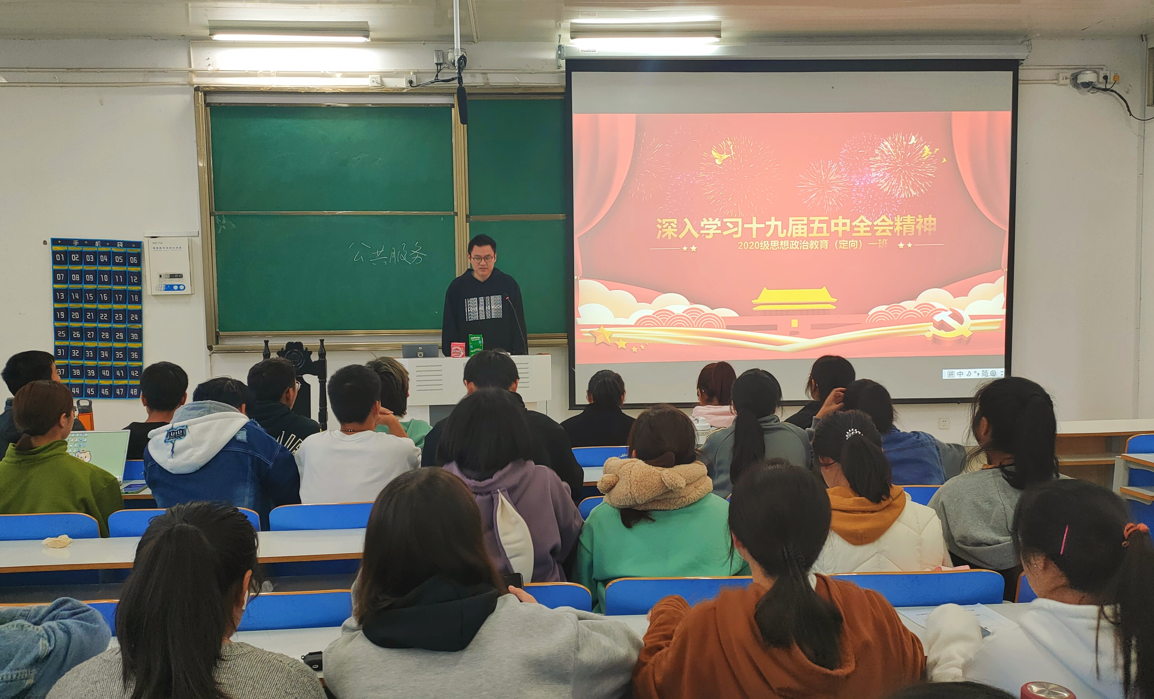 11月17日上午,七大罪 定向一班在社科楼514教室顺利举办“深入学习十九届五中全会精神”主题班会。全体学生聆听了此次班会,班会由团支书朱紫峰主持。