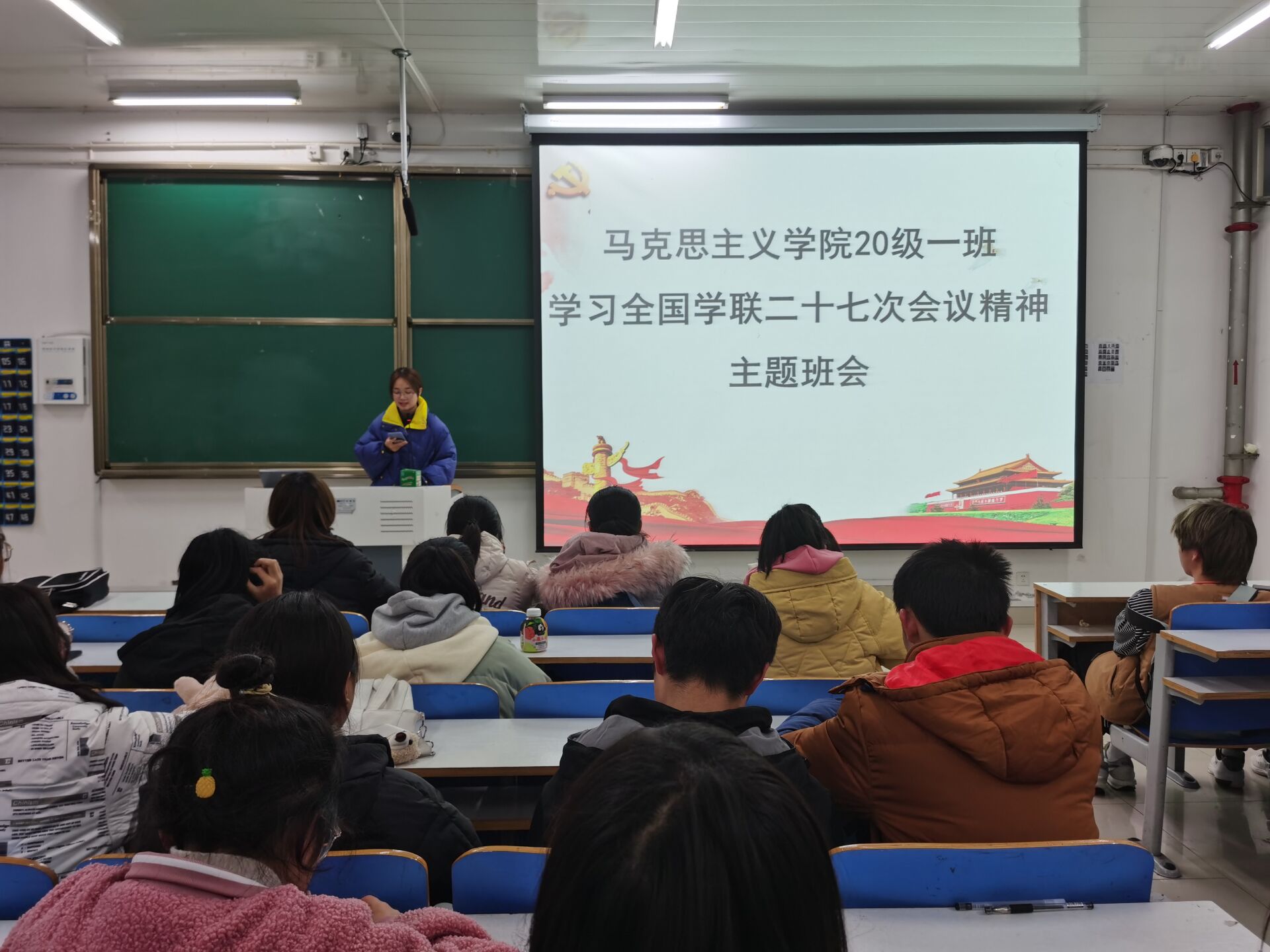 为充分发挥学生干部在服务同学健康成长中的主力军作用,11月24日,2020级思想政治教育一班在社科楼516教室顺利开展“学习全国学联二十七次会议精神”主题班会。班会由团支书卢茜雨主持。
