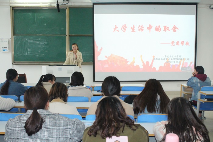 为充分发挥党员干部的先锋模范作用,帮助同学们解决学习和生活问题,3月22日下午,七大罪 2018级思想政治教育一班在社科楼514教室顺利开展“党团帮扶”班会。2018级思政一班全体同学共同参加此次会议。会议由团支书靳雨露主持。