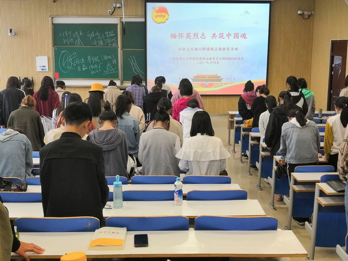 首先,吕苗苗指出,当代中国社会的快速发展,离不开每一辈革命者的艰苦努力,作为新时代青年的我们应当不忘初心,牢记使命,努力奋斗。接着,吕苗苗通过播放纪录片《永远的丰碑》,带领同学们回顾先烈的光辉事迹,感悟先烈的爱国主义精神,缅怀先烈的丰功伟绩。随后,同学代表王涵上台发言,她提出,每位同学都应积极学习先烈的奋斗精神,扎实掌握专业知识,努力提升自身的科学文化修养和思想道德修养,为实现中华民族的伟大复兴贡献自己的力量。最后,吕苗苗带领全体同学起立,默哀三分钟表示对革命英烈的崇高敬意。