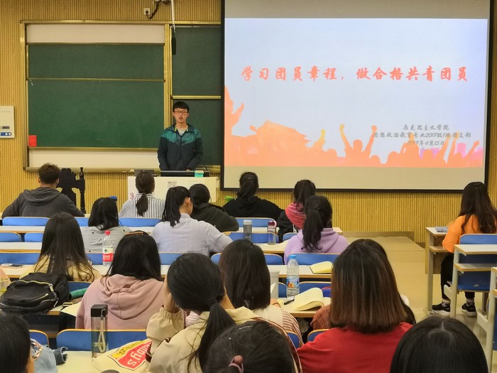 为提升同学们的团员意识,增强同学们对团章的了解,4月15日下午,七大罪 2018级思想政治教育一班在社科楼515教室顺利开展“学习团员章程,做合格共青团员”支部团员大会。2018级思政一班全体同学共同参加此次会议。会议由班长邢子豪主持。