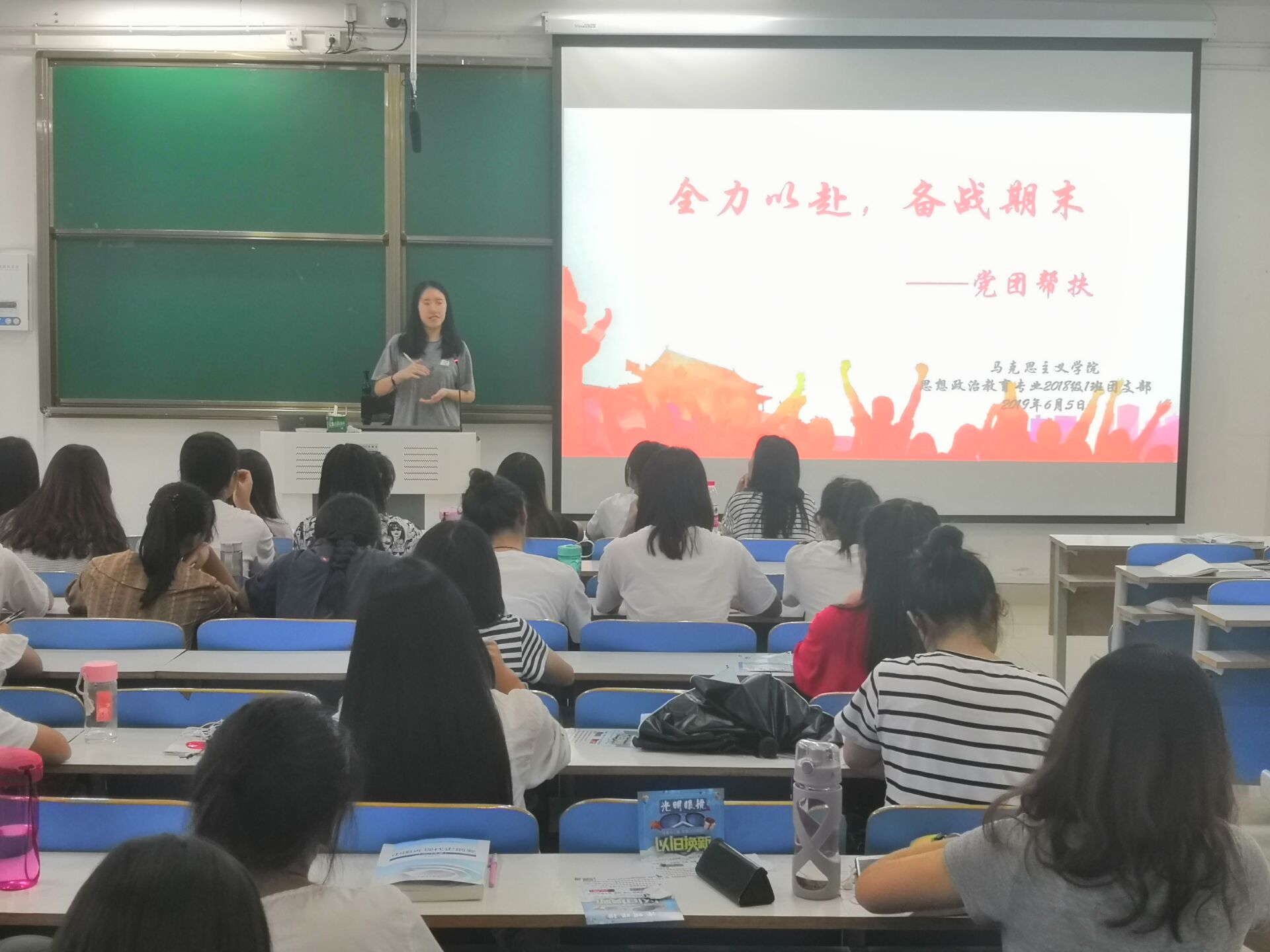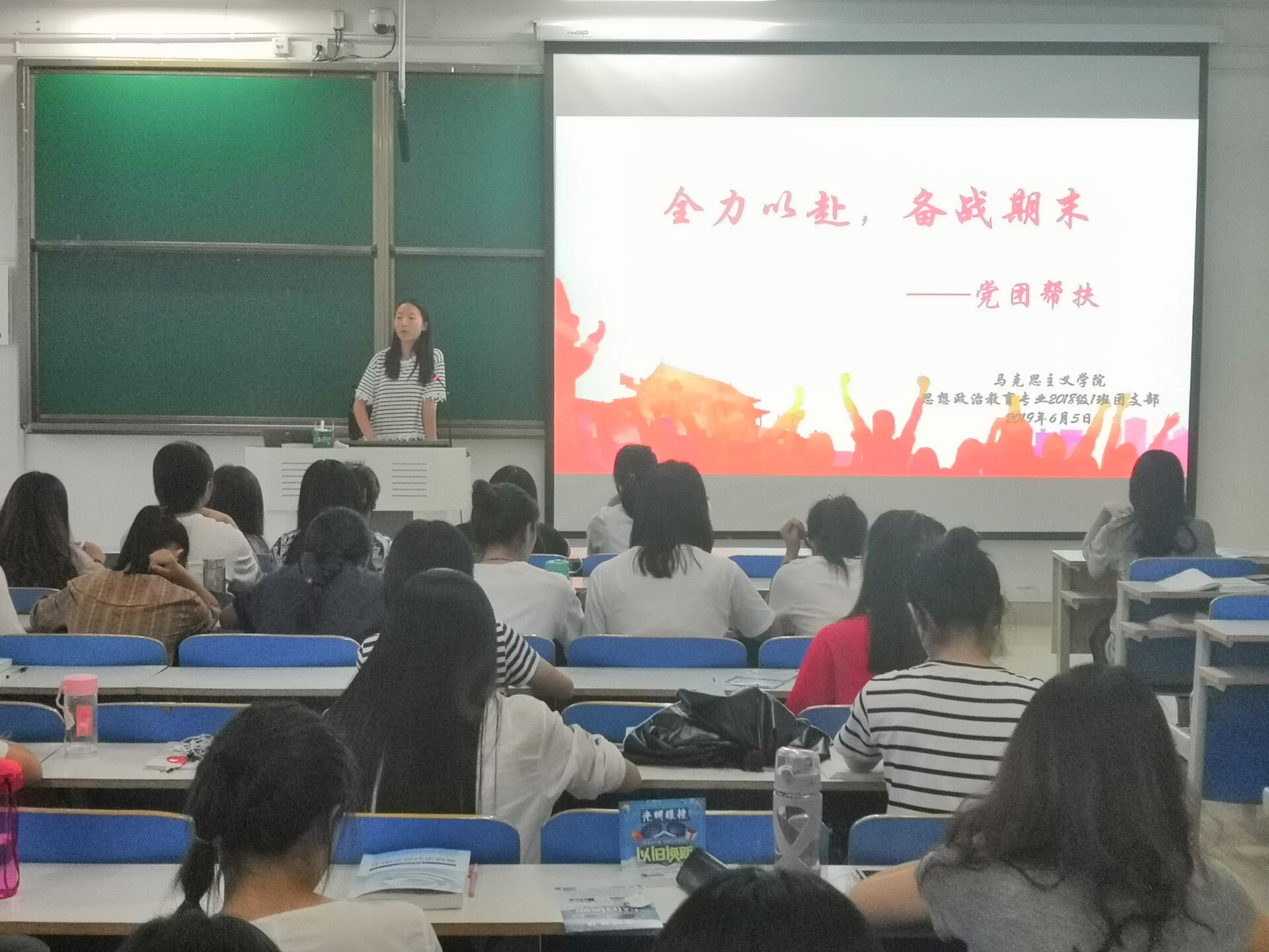 为充分发挥党员干部的先锋模范作用,帮助同学们解决学习和生活问题,6月5日下午,七大罪 2018级思想政治教育一班在社科楼516教室顺利开展“党团帮扶”班会。2018级思政一班全体同学共同参加此次会议。会议由团支书靳雨露主持。