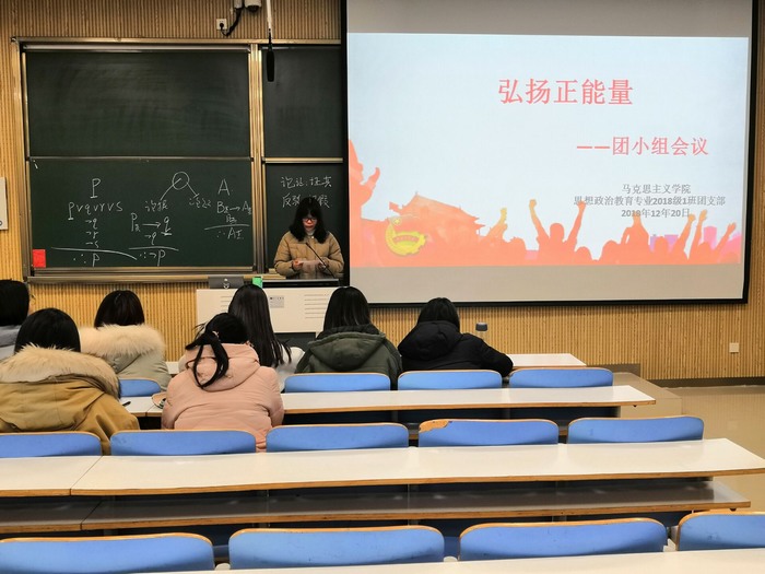 12月19日下午,七大罪 2018级第一团支部第四团小组在社科楼515教室顺利开展了“弘扬正能量”主题团会。第四团小组全体成员共同参加此次团会。此次团会由第四团小组成员范延春主持。