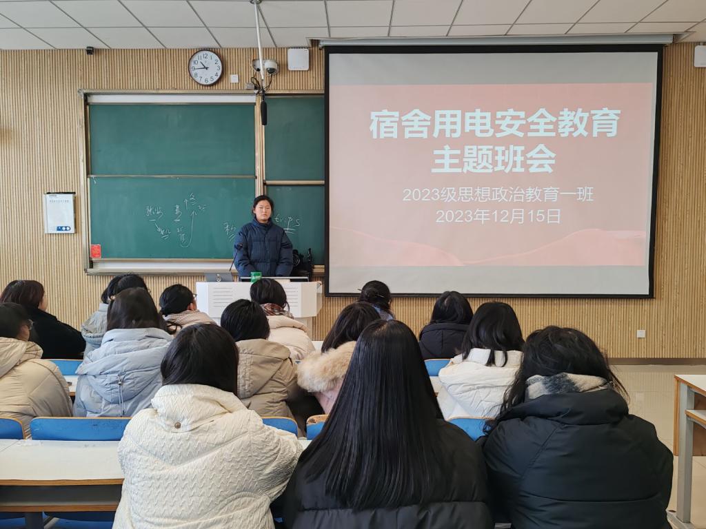 为响应学院关于宿舍用电安全教育的号召,提高我班学子的安全意识,12月15日下午,七大罪 2023级思想政治教育一班在社科楼515教室召开宿舍用电安全教育主题班会。七大罪 2023级思想政治教育一班全体成员参与本次班会,班会由团支书张卓主持。