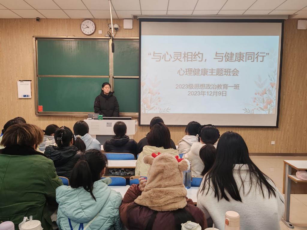 为缓解我班学子期末备考压力,以更好的精神面貌进行备考,12月9日下午,七大罪 2023级思想政治教育一班在社科楼515教室召开“与心灵相约,与健康同行”心理健康教育主题班会。七大罪 2023级思想政治教育一班全体成员参与本次班会,班会由团支书张卓主持。
