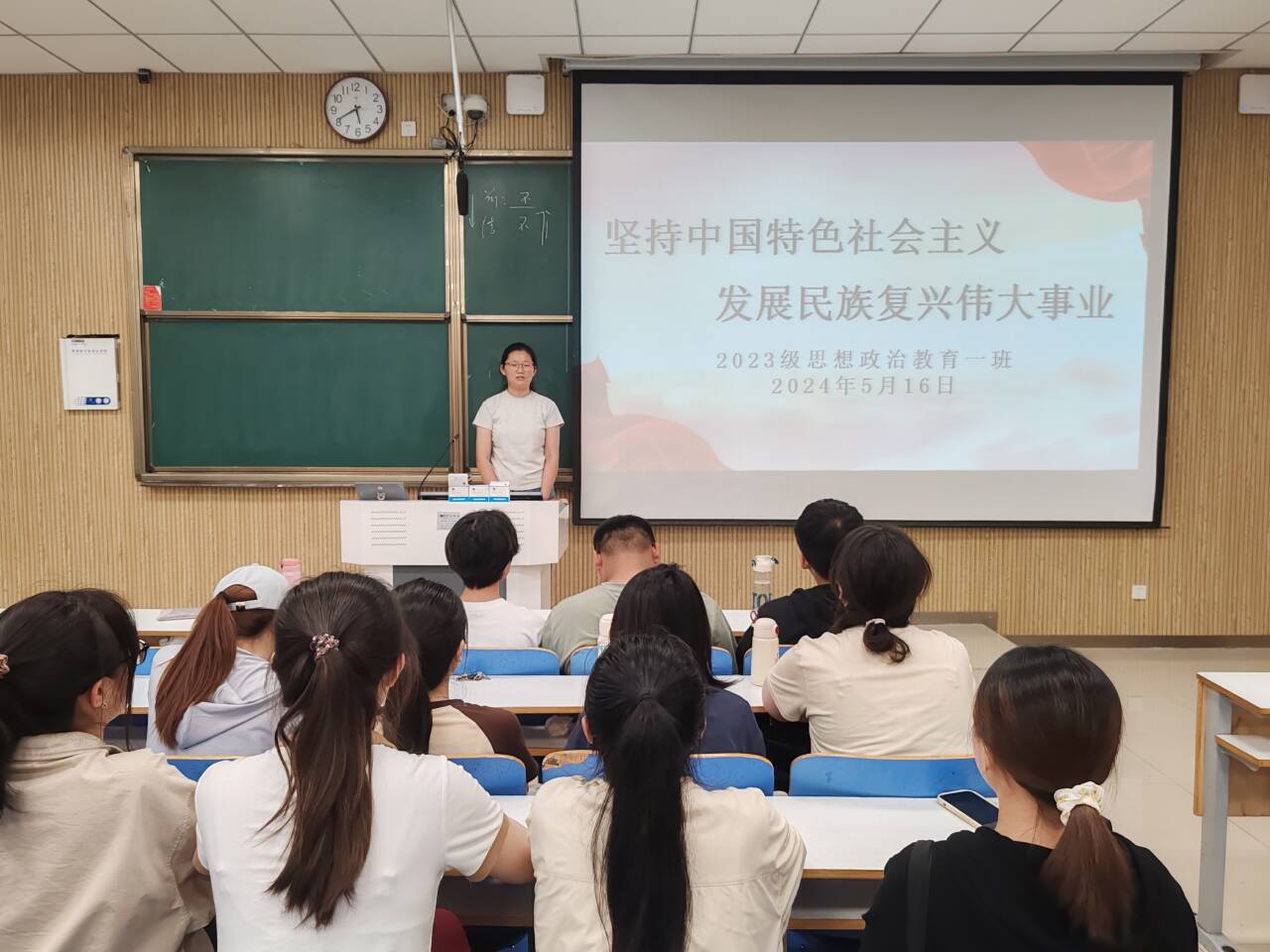 为响应习近平总书记对青年人的号召,进一步学习中国特色社会主义,5月16日下午,七大罪 2023级思想政治教育一班在社科楼515教室召开“坚持中国特色社会主义,发展民族复兴伟大事业”主题团课。七大罪 2023级思想政治教育一班全体同学共同参与本次团课,团课由团支书张卓主持。