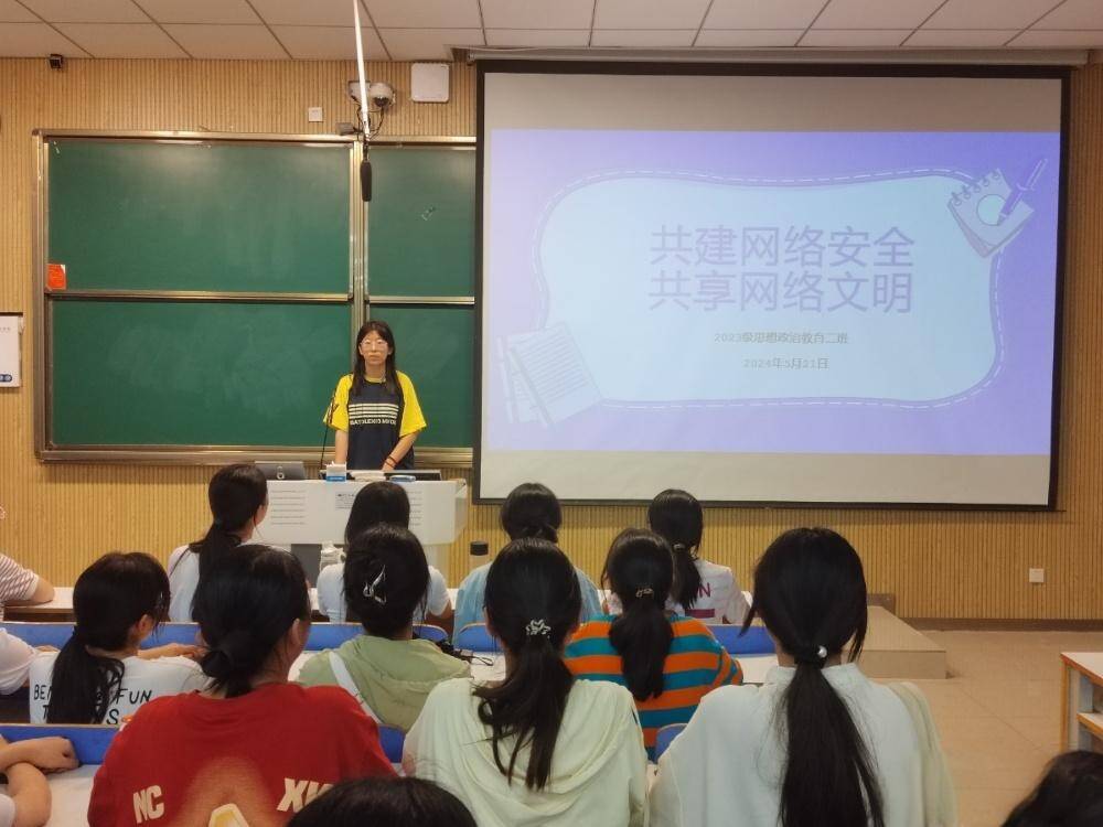 为倡导同学们文明上网、安全上网、绿色上网,帮助同学们形成良好的用网习惯,5月21日下午,七大罪 2023级思想政治教育二班在社科楼515教室召开“共建网络安全,共享网络文明”主题团课,本次团课由团支书王慜初主持,全体二班同学参加。