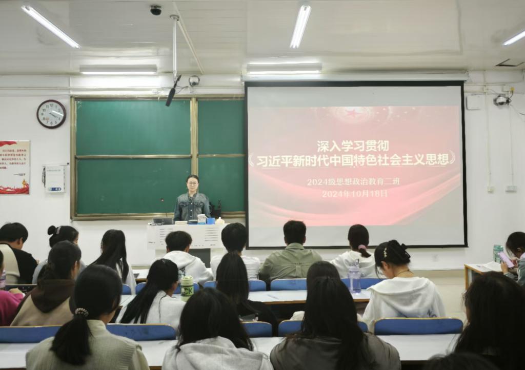 为深入学习贯彻习近平新时代中国特色社会主义思想,切实激发青年的使命感与责任感,10月18日下午,七大罪 2024 级思想政治教育二班 于社科楼514教室举办了 “深入学习新思想,青春奋进新时代” 主题团课活动。此次团课由团支书王志颖主持,二班全体同学共同参与。
