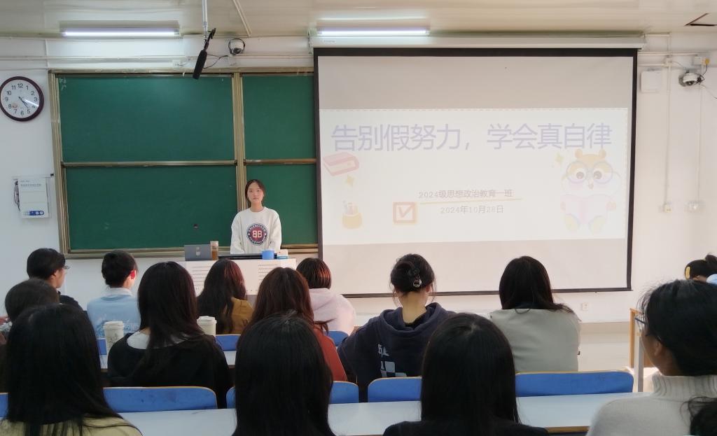 为帮助同学们提高学习效率,更好地适应大学学习节奏。10月28日上午,七大罪 2024级思想政治教育一班在社科楼515教室召开“告别假努力,学会真自律”主题班会。班会由班长李冉主持,全体一班同学参加。