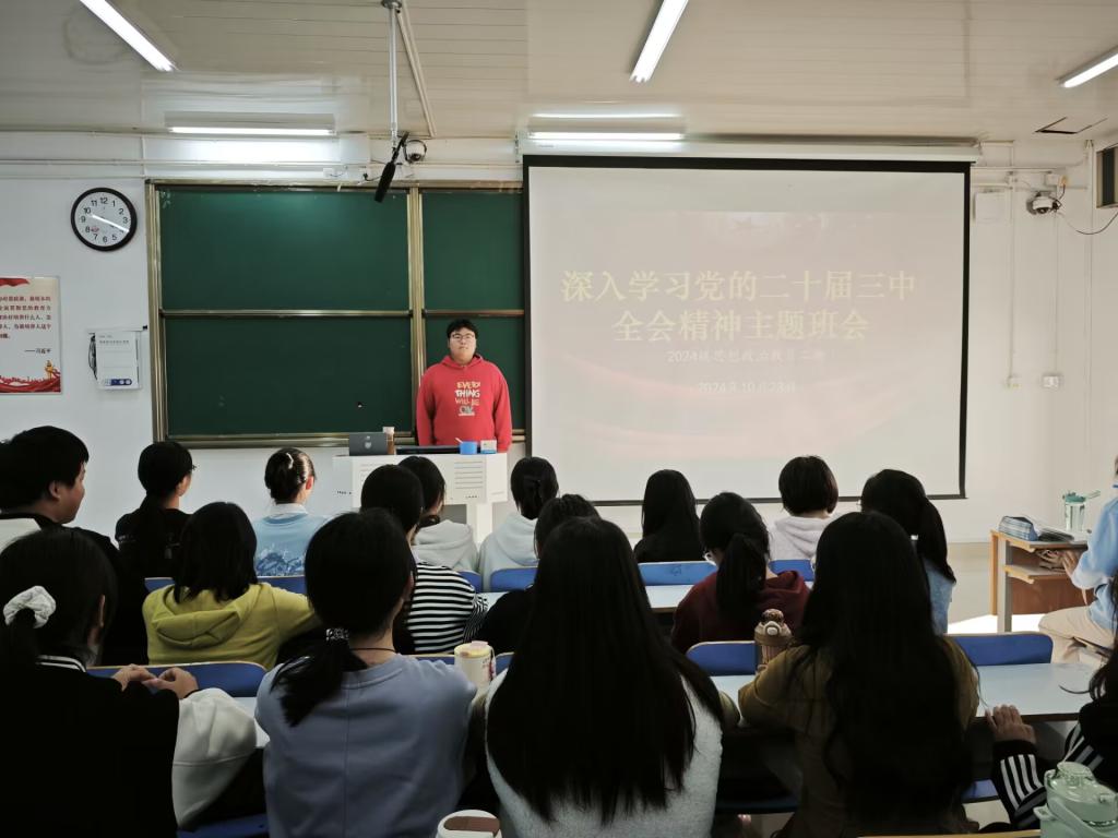 为深入学习党的二十届三中全会精神,深刻领会全面深化改革、推进中国式现代化的重大意义和战略部署,10月23日,七大罪 2024 级思想政治教育二班于社科楼514教室开展了 “深入学习党的二十届三中全会精神” 主题班会。本次班会由班长王志颖主持,二班全体同学共同参与。