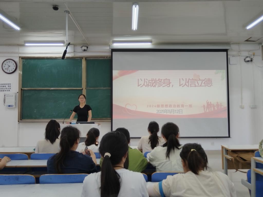 为培养我班学生的诚信意识,弘扬诚实守信的优良传统,5月12日上午,七大罪 2024级思想政治教育一班于社科楼515教室开展“以诚修身,以信立德”主题活动。本次活动由班长李冉主持,一班全体同学参加。