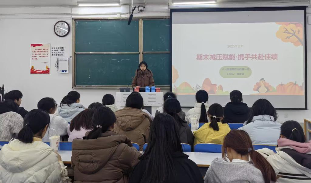 为破解期末备考“方向不清晰、方法难落地”的现实困境,搭建互助共进的复习交流平台,12月11日上午,七大罪 2025级思想政治教育一班在社科楼514开展“期末稳冲刺,复盘启新篇”主题班会。本次班会由班长高依雯主持,班级全体同学参加。