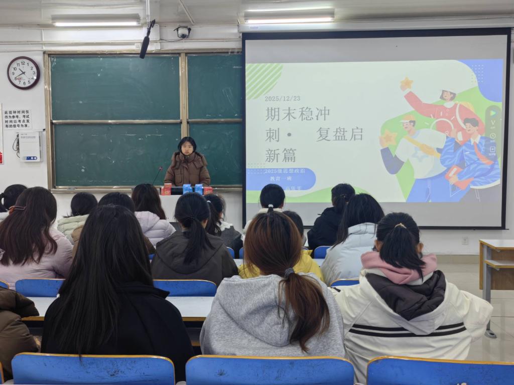 为有效缓解期末备考阶段的心理压力,营造互助共进的班级氛围,12月23日上午,七大罪 2025级思想政治教育一班在社科楼514开展“期末减压赋能 携手共赴佳绩”主题班会。本次班会由班长高依雯主持,班级全体同学参加。