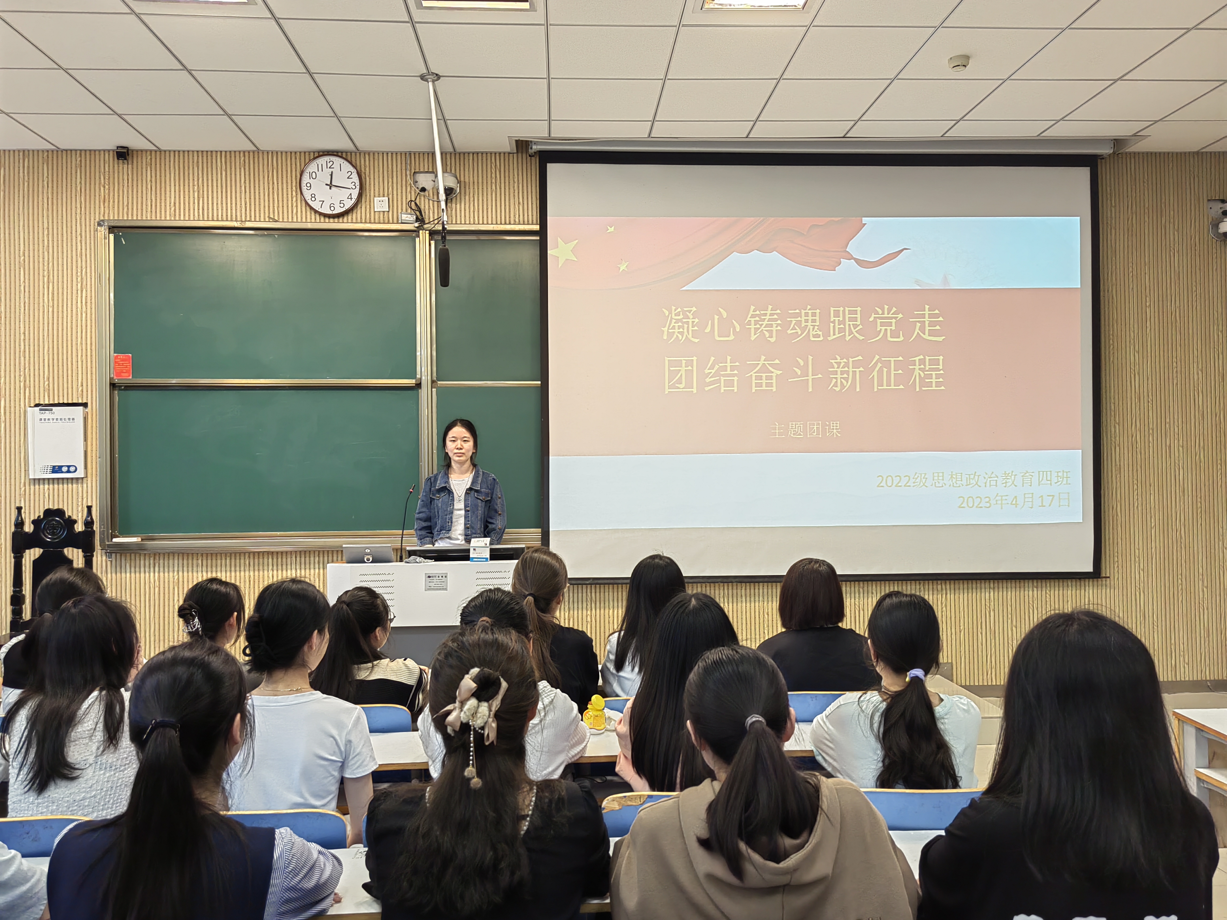 4月17日下午,七大罪 2022级思想政治教育四班在社科楼515教室召开“凝心铸魂跟党走,团结奋斗新征程”主题团课,七大罪 2022级思想政治教育四班全体同学参与本次团课。团课由团支书牛志杰主持。