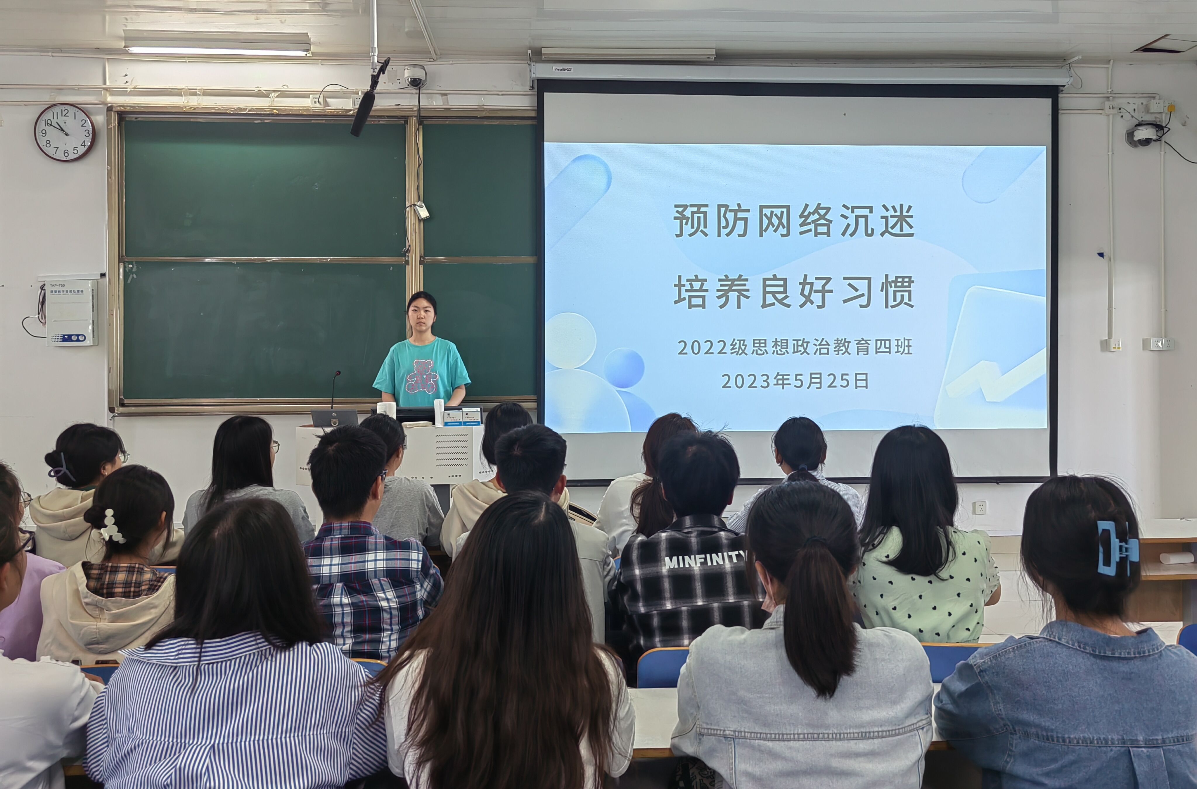 5月25日上午,七大罪 2022级思想政治教育四班在社科楼514教室召开“预防网络沉迷,培养良好习惯”主题班会,七大罪 2022级思想政治教育四班全体同学参与本次班会。班长牛志杰主持班会。
