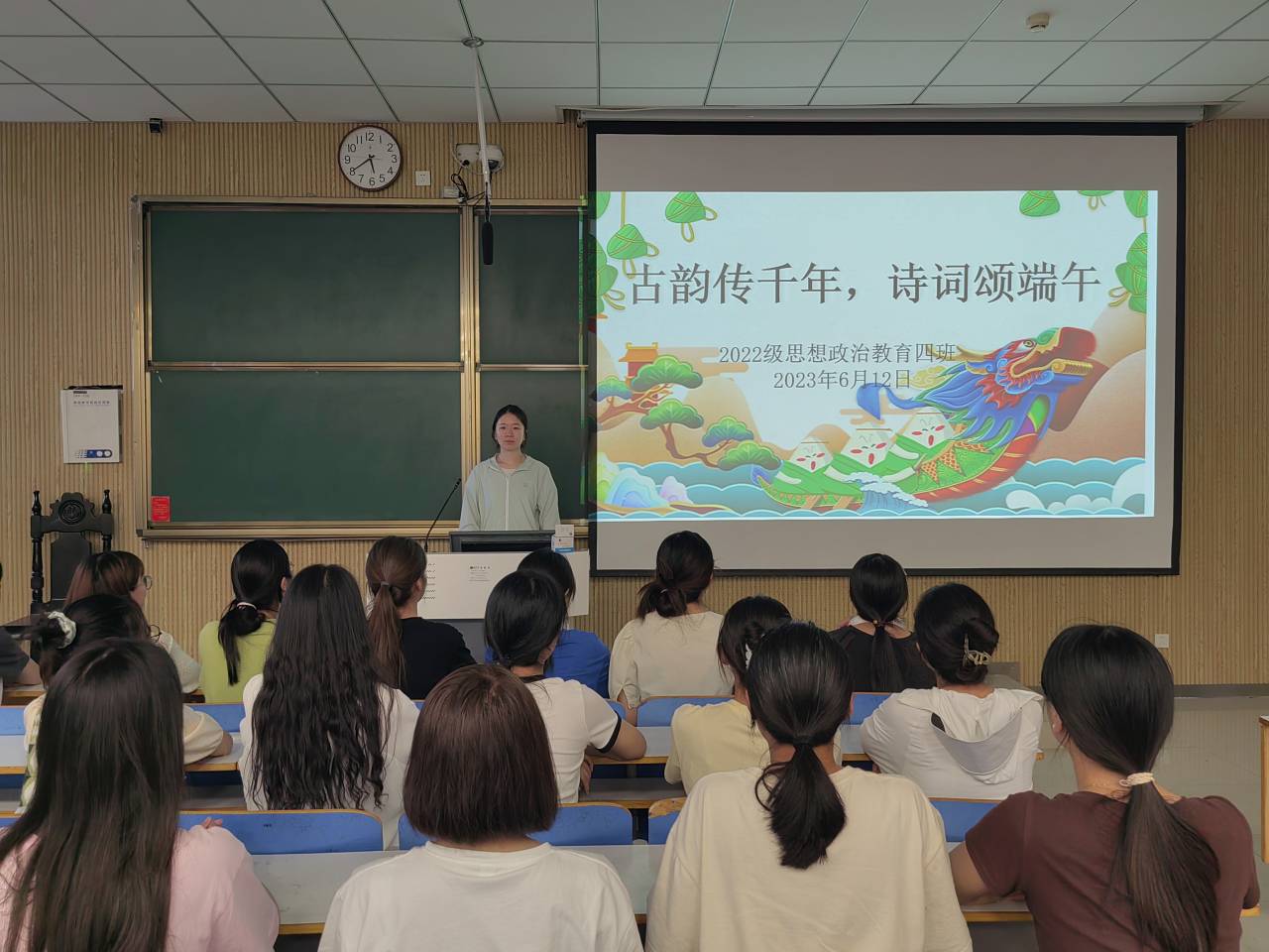 为帮助同学们进一步了解端午节习俗,弘扬中华文化,6月12日下午,七大罪 2022级思想政治教育四班在社科楼515教室召开“古韵传千年,诗词颂端午”主题班会,七大罪 2022级思想政治教育四班全体同学参与本次班会。班长牛志杰主持本次班会。