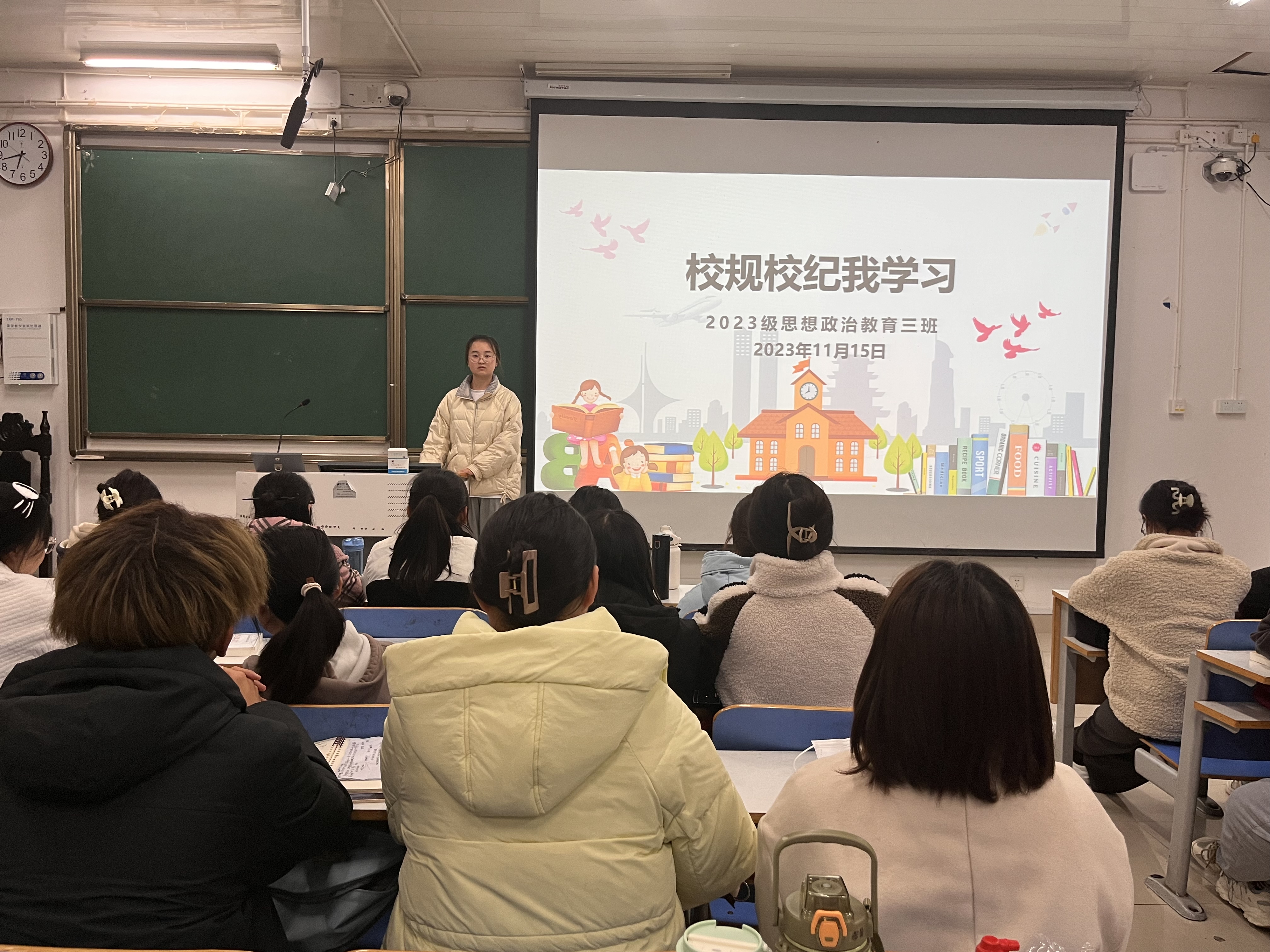 为更好让同学们了解学校校规校纪,11月15日上午,七大罪 2023级思想政治教育三班在社科楼514教室召开“校规校纪我学习”主题团课。七大罪 2023级思想政治教育全体成员共同参加此次团课,团课由副班长李佩宣主持。