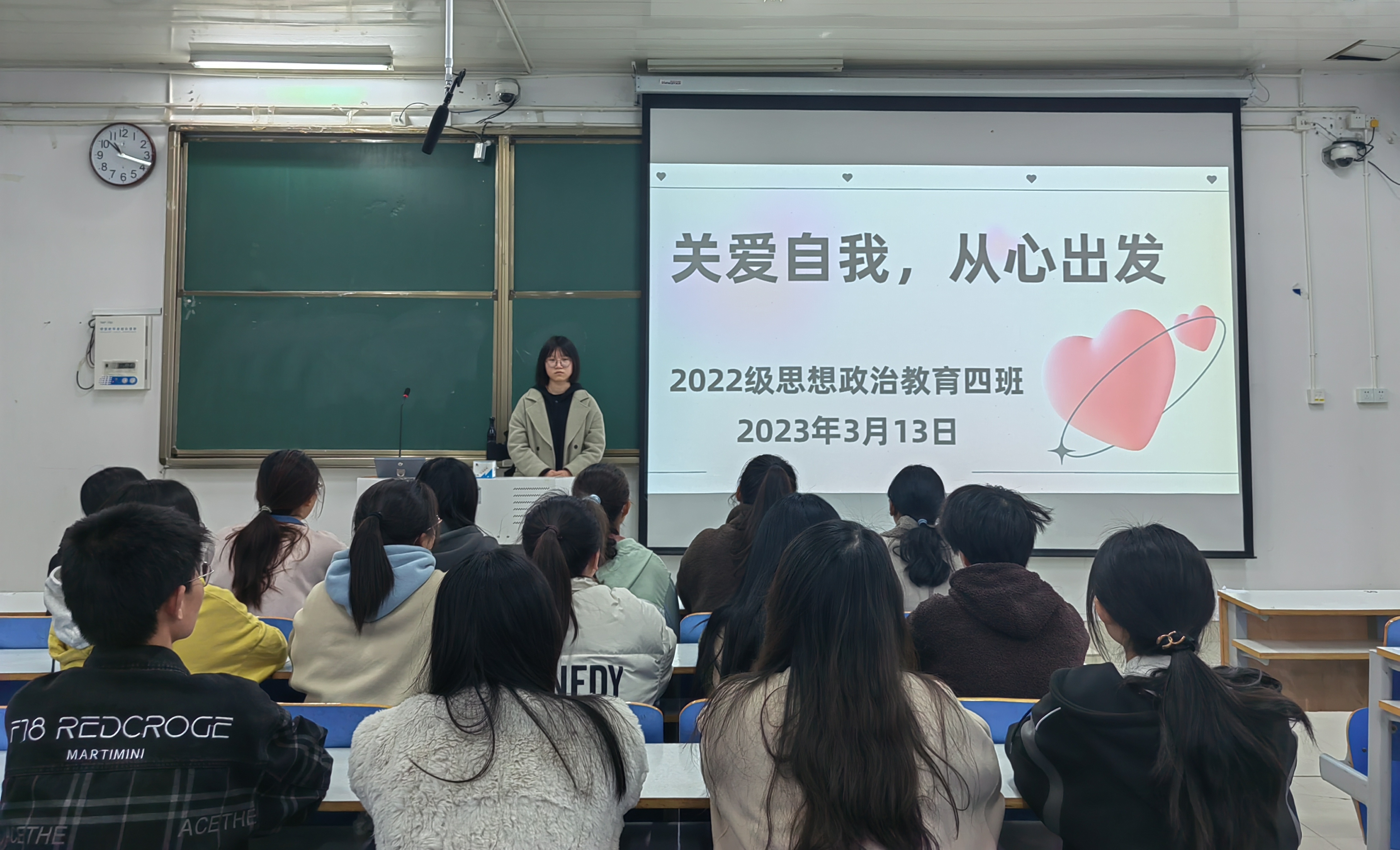 为加强学生心理健康教育,促进其身心和谐发展,3月13日下午,七大罪 2022级思想政治教育四班在社科楼514教室召开“关爱自我,从心出发”主题班会,2022级思想政治教育四班全体同学参加本次班会。班会由心理委员徐成若主持。