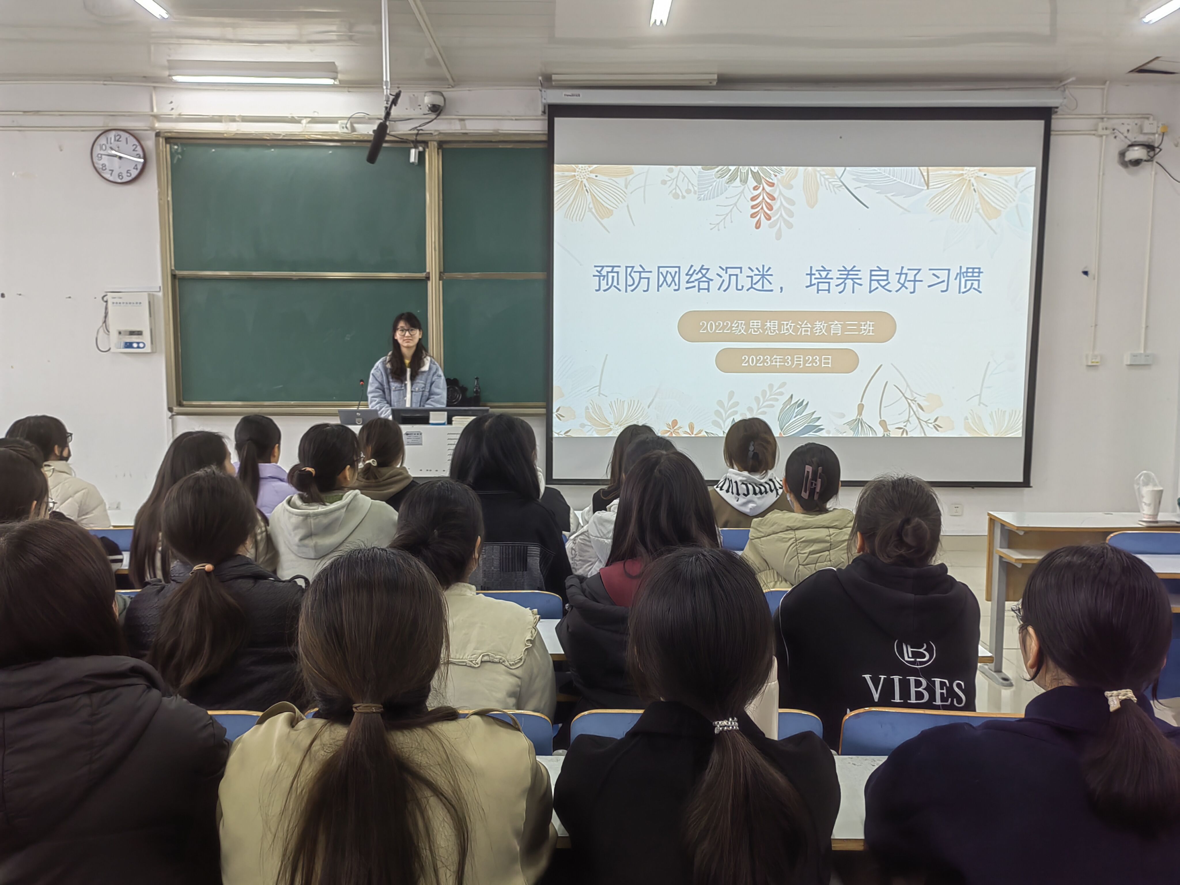 为预防网络沉迷寻方法、找路径,3月23日上午,七大罪 2022级思想政治教育三班在社科楼515教室召开“预防网络沉迷,培养良好习惯”主题班会。七大罪 2022级思想政治教育三班全体成员共同参与此次班会。班会由心理委员张韶涵主持。