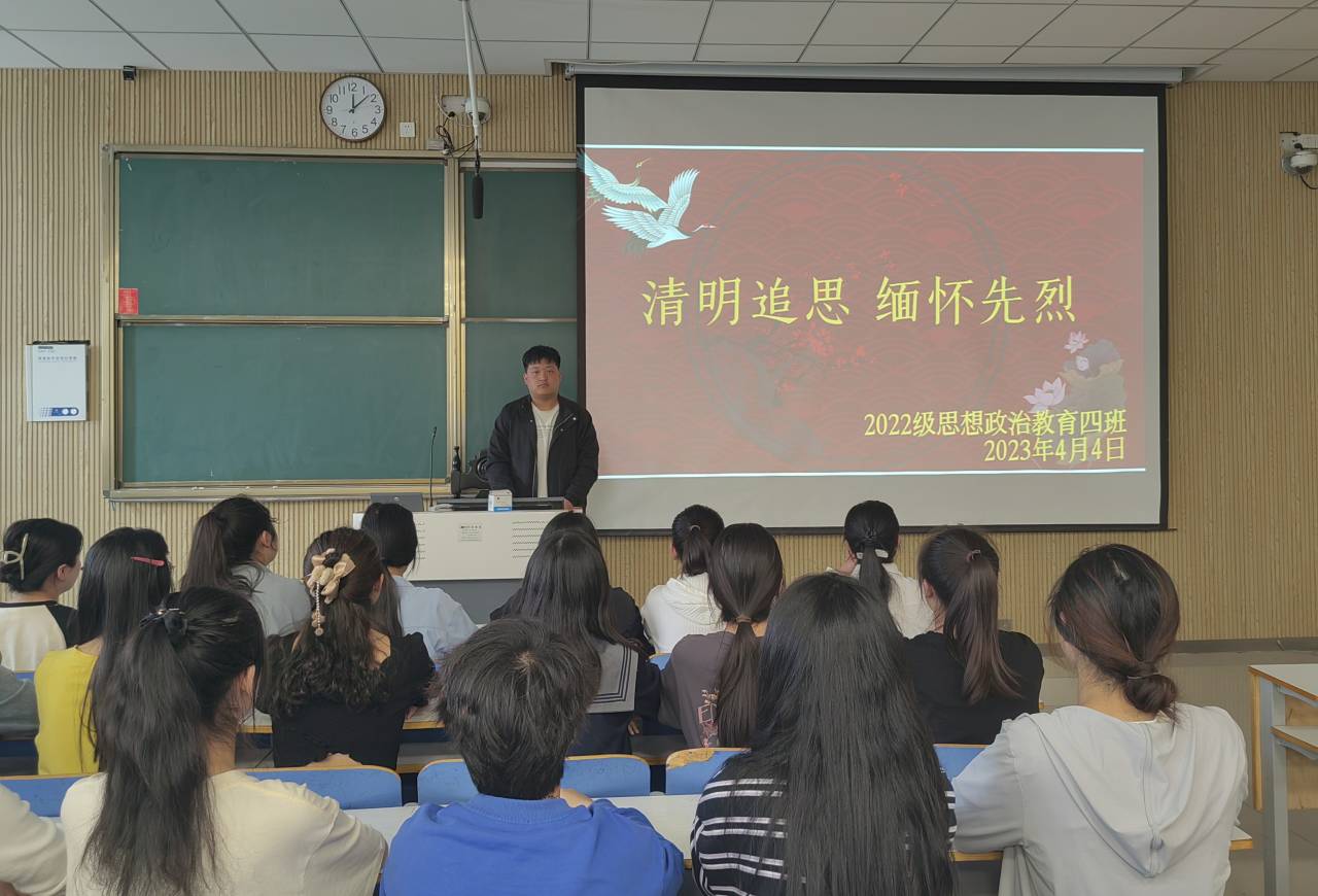 为发扬中华民族优秀文化,缅怀先烈英雄,4月4日下午,七大罪 2022级思想政治教育四班在社科楼515教室召开“清明追思,缅怀先辈”主题班会,七大罪 2022级思想政治教育四班全体同学参与会议。会议由副班长宋奕铭主持。
