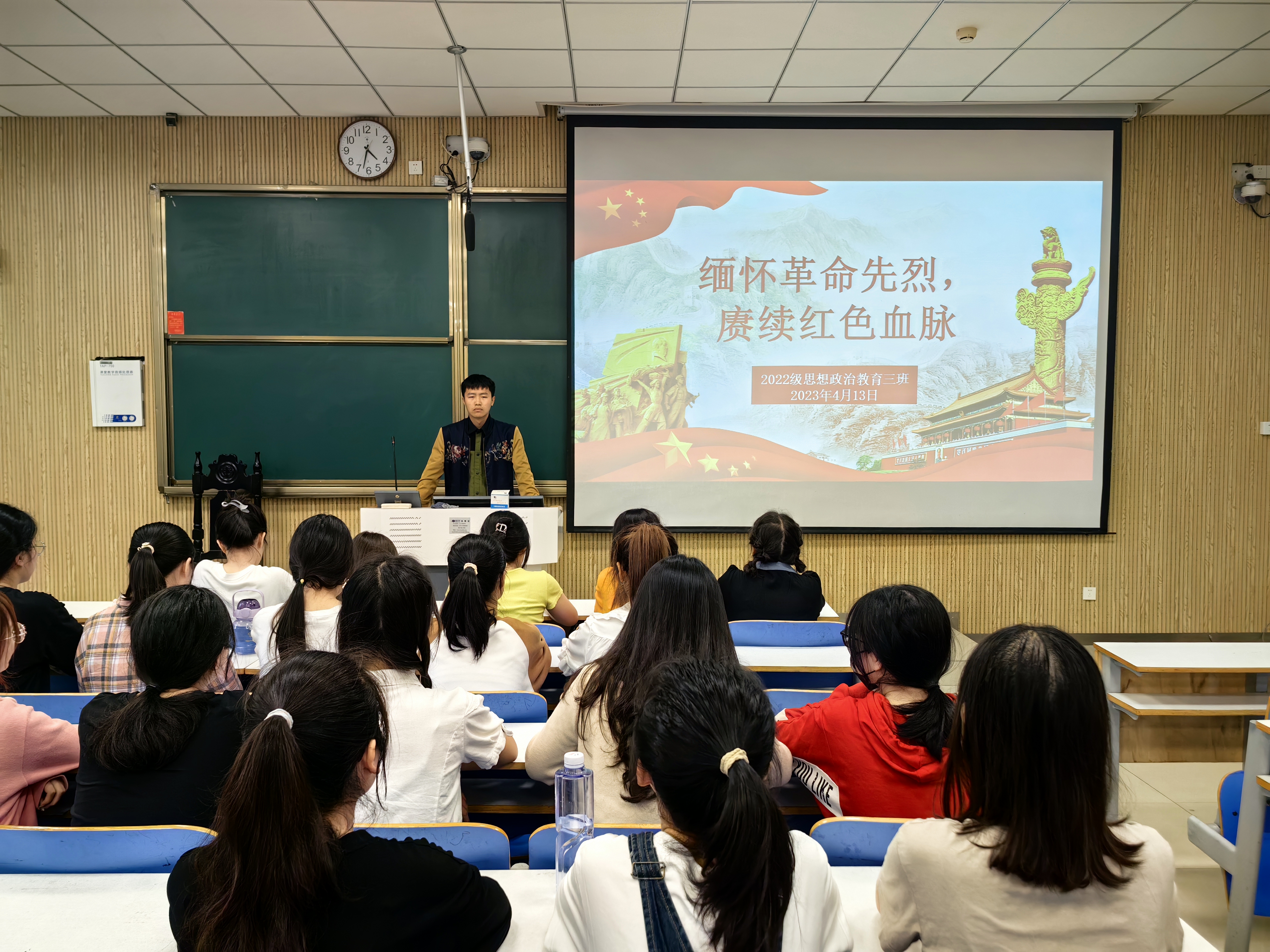为传承红色基因,弘扬革命精神,4月13日下午,七大罪 2022级思想政治教育三班在社科楼515教室召开“缅怀革命先烈,赓续红色血脉”主题团课。七大罪 2022级思想政治教育三班全体成员共同参与此次主题团课。团课由团支书余浩洋主持。