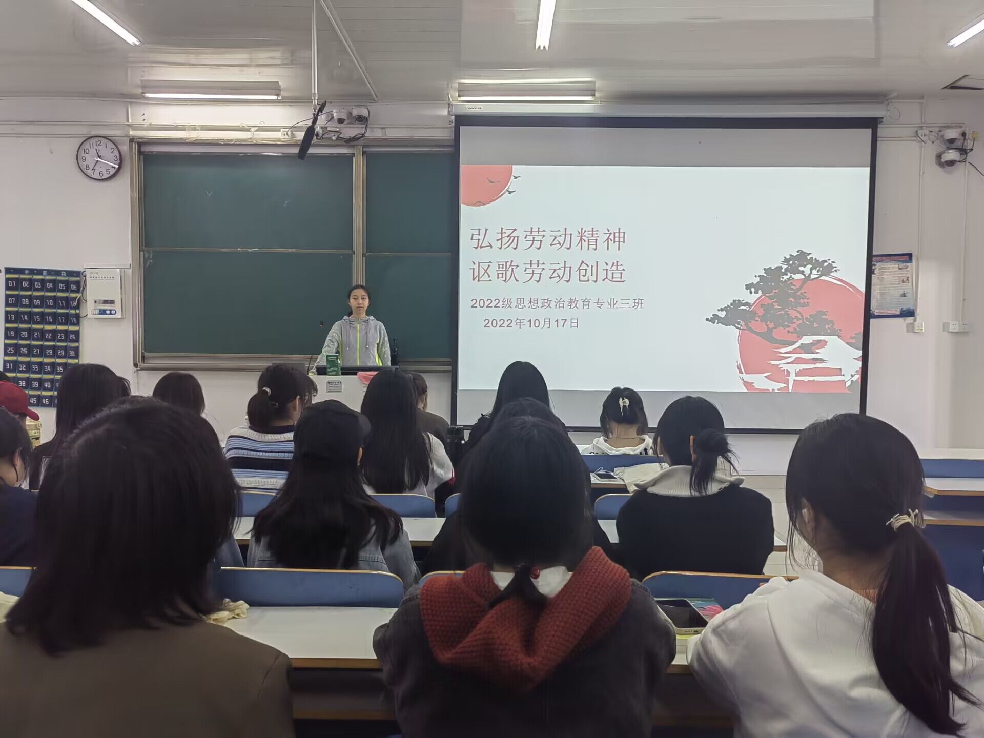 为树立正确的劳动观,切实加强大学生劳动教育,10月17日上午,七大罪 2022级思想政治教育三班在社科楼515教室召开“弘扬劳动精神,讴歌劳动创造”主题班会。2022级思想政治教育三班全体成员参加会议,会议由劳动委员郑慧芳主持。