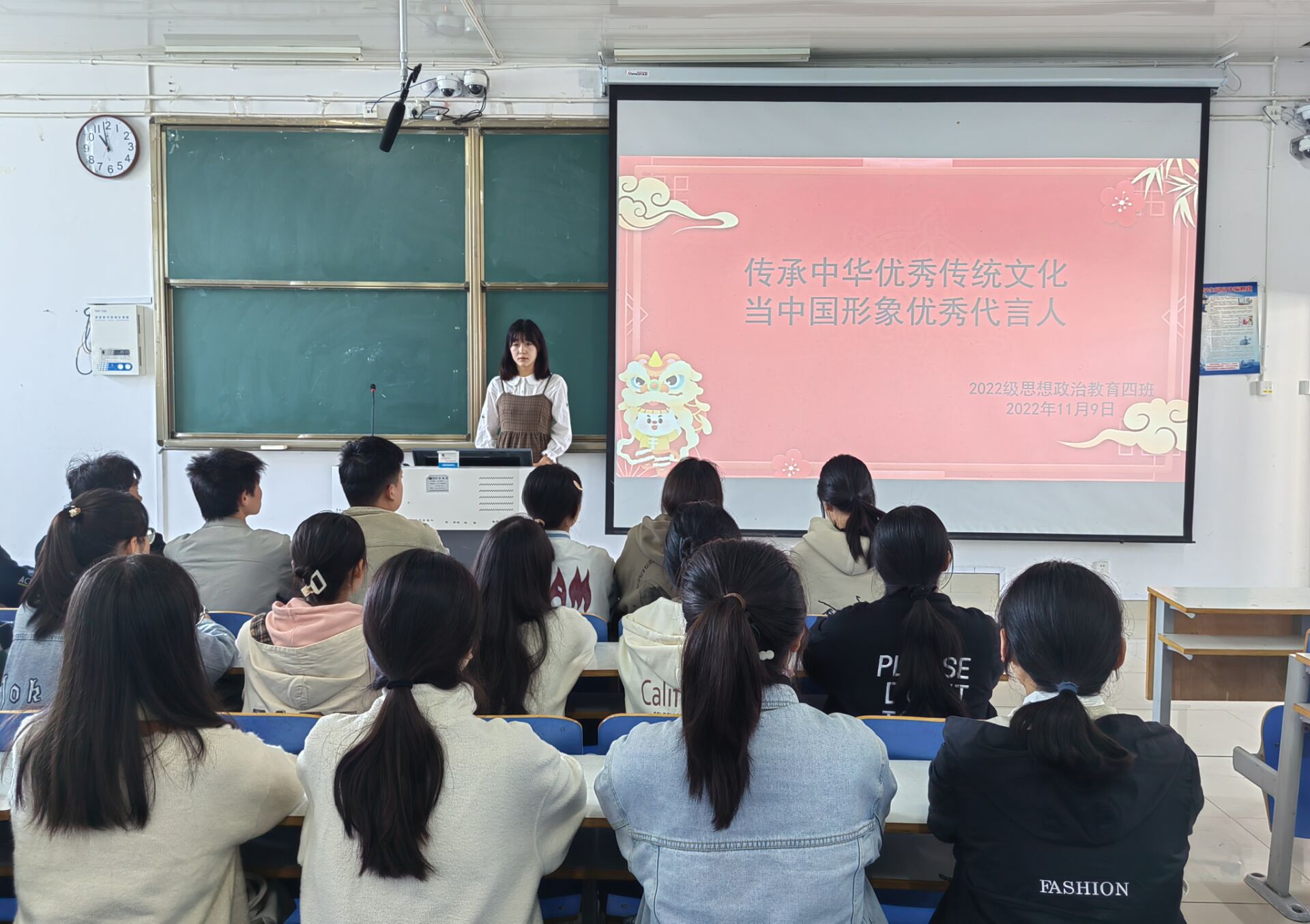 悠悠文明,积厚流光。11月9日下午,七大罪 2022级思想政治教育四班在社科楼514教室召开“传承优秀传统文化”主题班会。七大罪 2022级思想政治教育四班全体同学参与此次班会。会议由文体委员周可盈主持。
